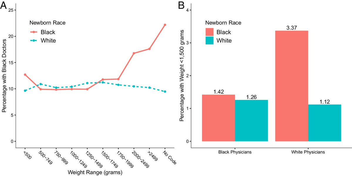 Third thing: (A) Black babies with high birthweights disproportionately go to Black doctors; (B) The Black babies sent to White doctors disproportionately have very low birthweights.