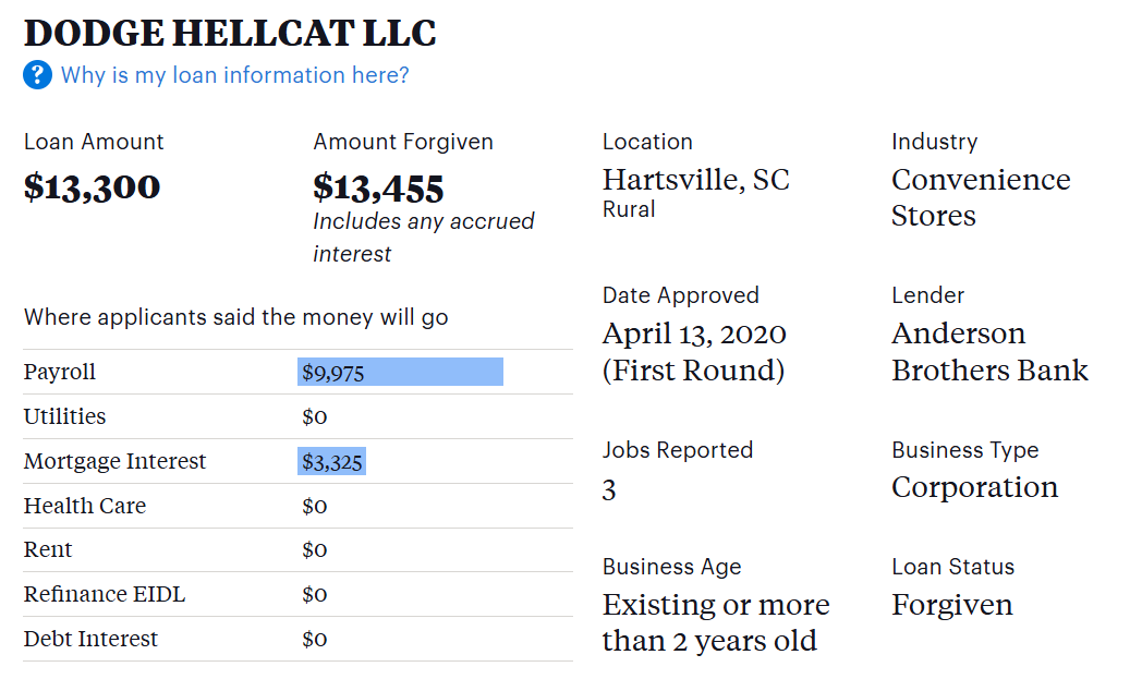 The COVID era Paycheck Protection Program was defrauded at an incredible scale. People received PPP loans for total nonsense at stunning rates. Thread of funny claims. Dodge Hellcat LLC