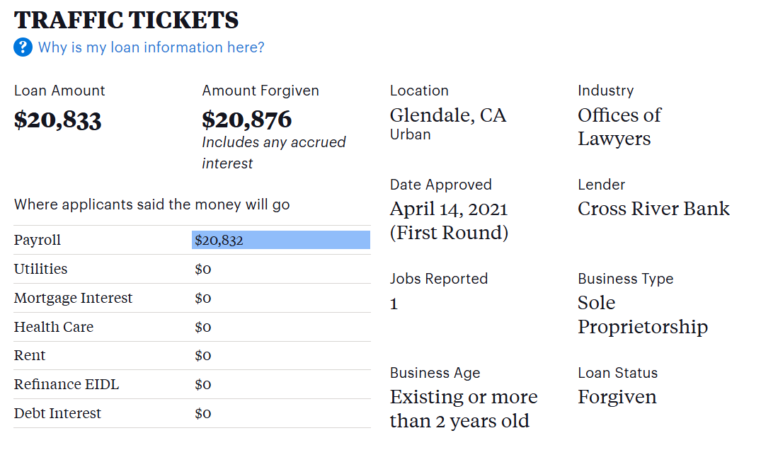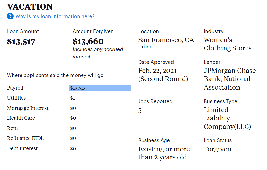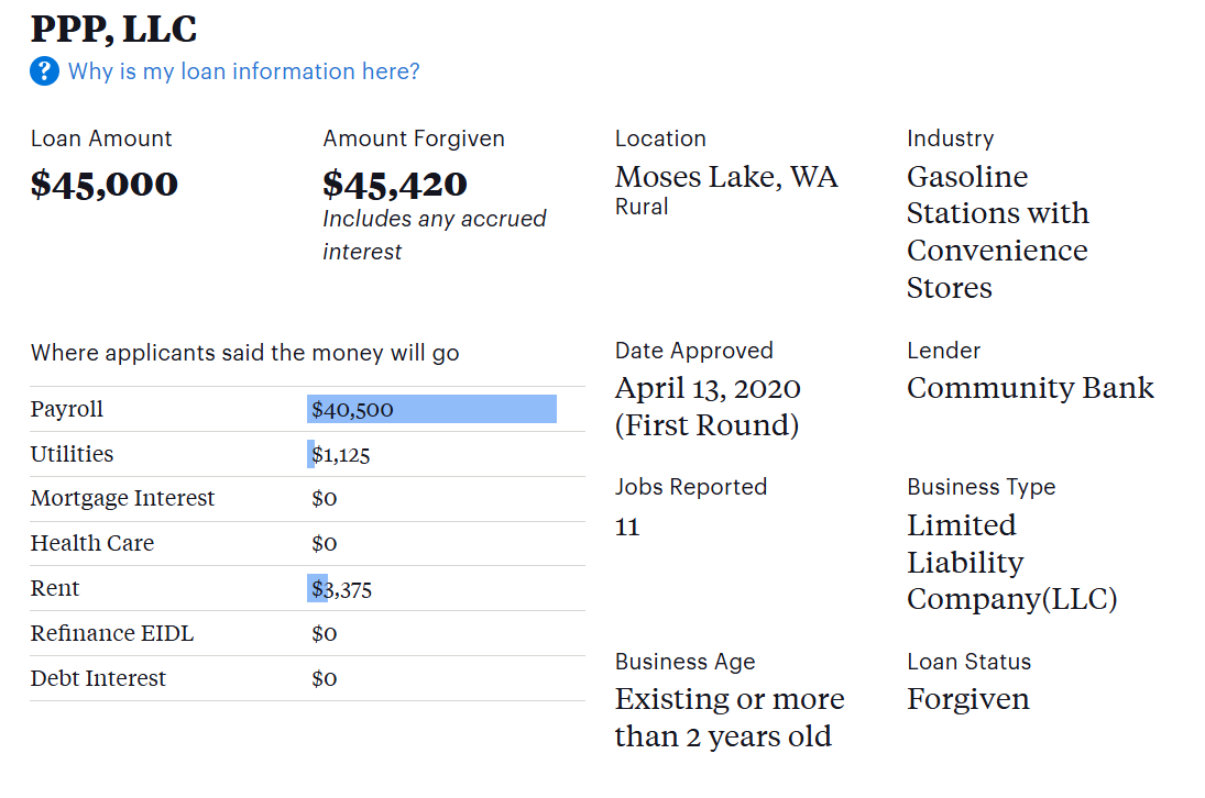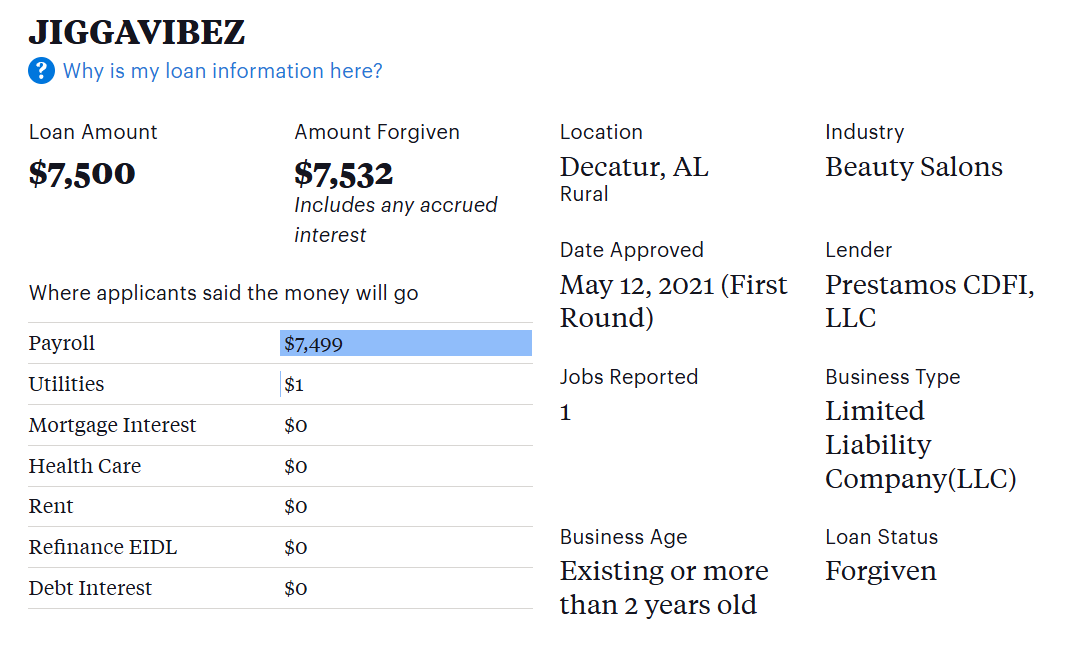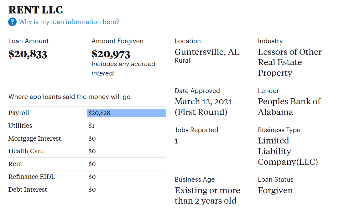 As a reminder in case you skipped over it, Free Money LLC had their loans forgiven. They got to keep that fraudulently obtained money. Feel like a sucker yet?