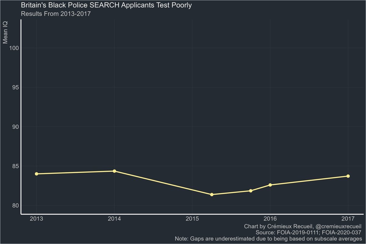 Another set of FOI requests for data from the Police SEARCH Recruit Assessment Centre showed similar results. Notably, in the National Police Promotion Framework's Step Two Inspector examination (FOIA-2020-156), Blacks scored 91.39 in 2017, 91.35 in 2018, and 97.01 in 2019.