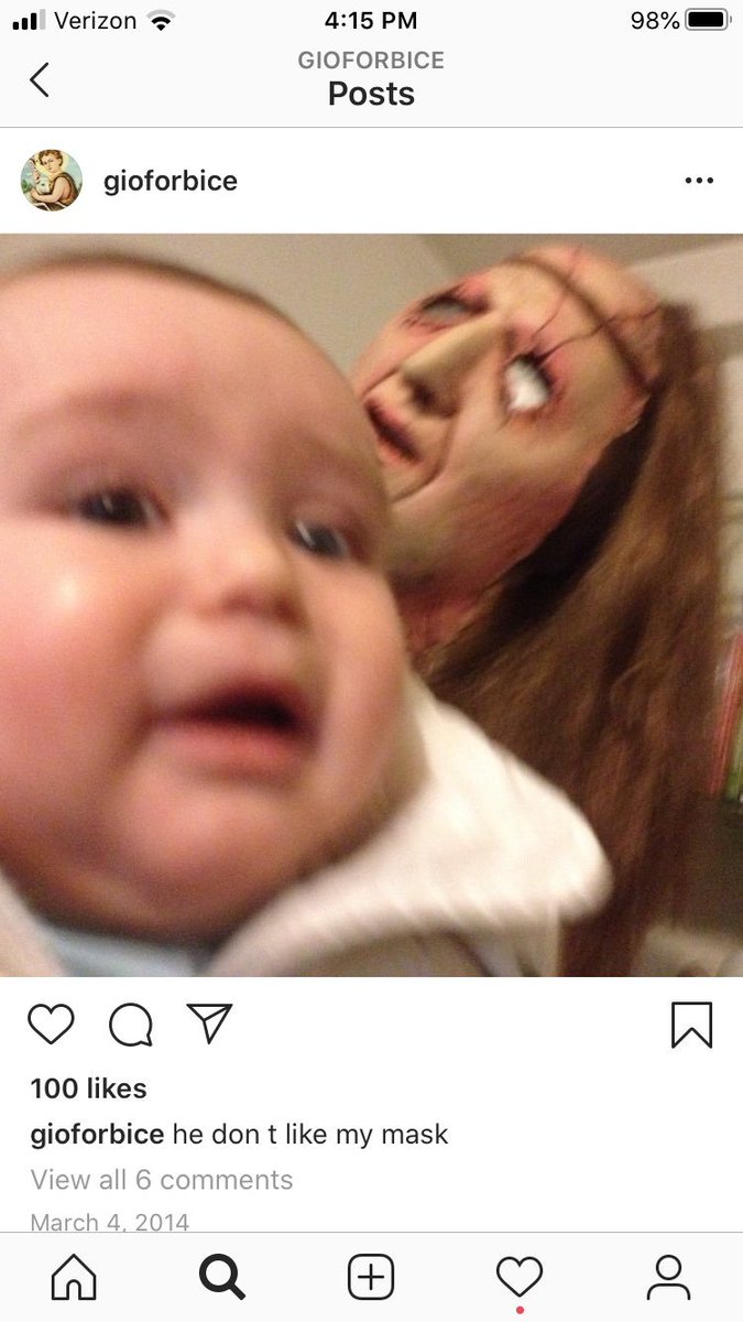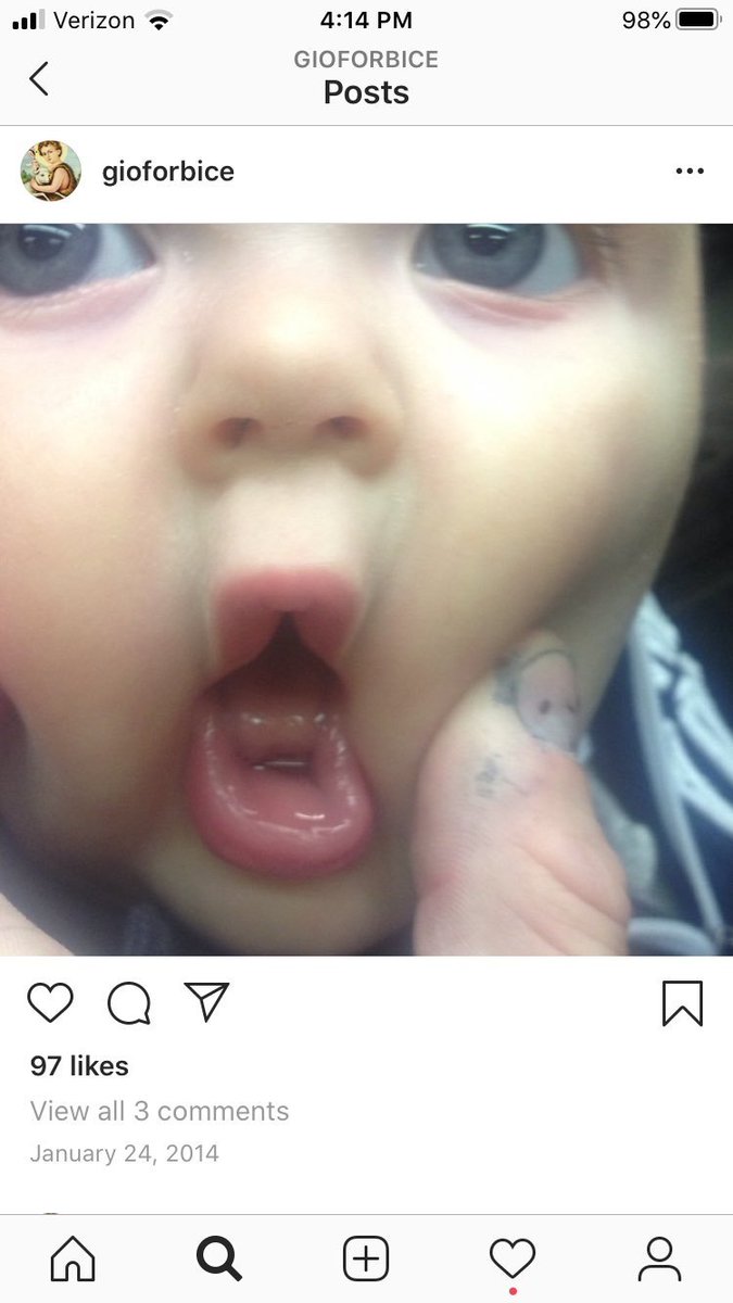 My theory is her showing when she gets beat up was by Gio but let's not delve into that without evidence. This man has easily one of the most sinister gram pics I've seen in my life. I'm not sure the 4th pic is his kid ? His account is full of young kids and not all are his...