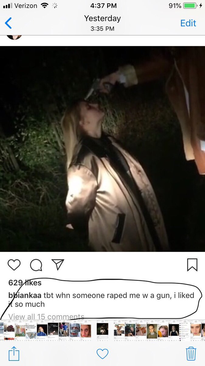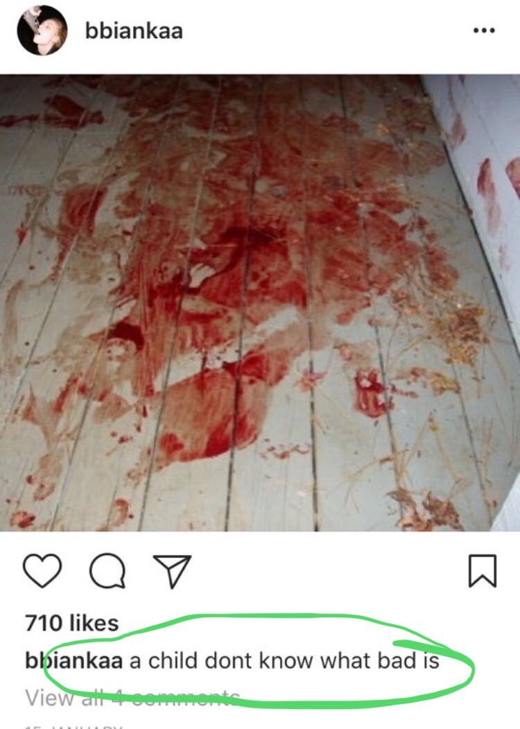 I found the pic on the right incredible disturbing what is she actually referring to when she tagged gosha and added a wink. Maybe it's just some weird goth humour but it is from the The Shining, which is about witches that what a young boys shining. https://t.co/YfGXowHgHP