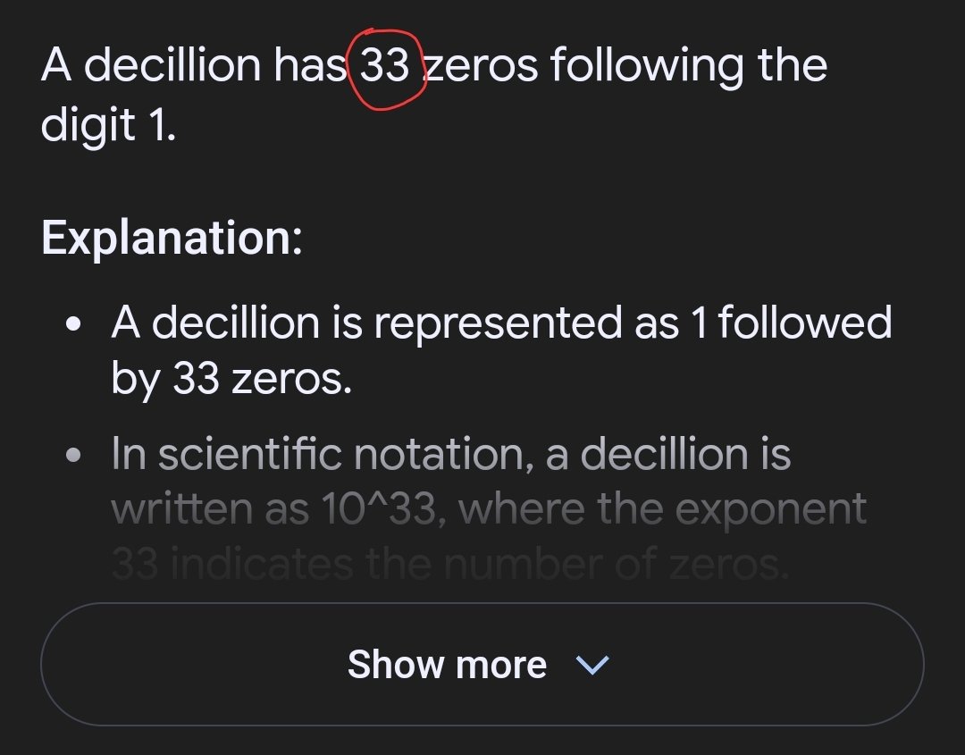guess how many 0's is in a decillion? 33 https://t.co/2fxUK1Gk78