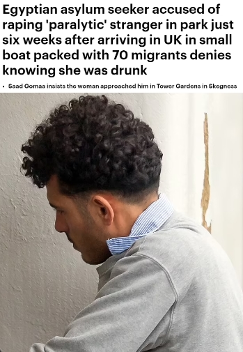 Saad Gomaa, 34, an Egyptian national, is accused of raping a woman weeks after arriving in the UK by boat... Gomaa attacked the woman after she wandered into Tower Gardens in Skegness after dark. He was arrested in a bar in the Lincolnshire resort later that night... The married father-of-one, who was living at a hotel in Skegness while on Home Office bail, said through an Arabic interpreter: 'I don't know if she was maybe drunk. But she was happy...