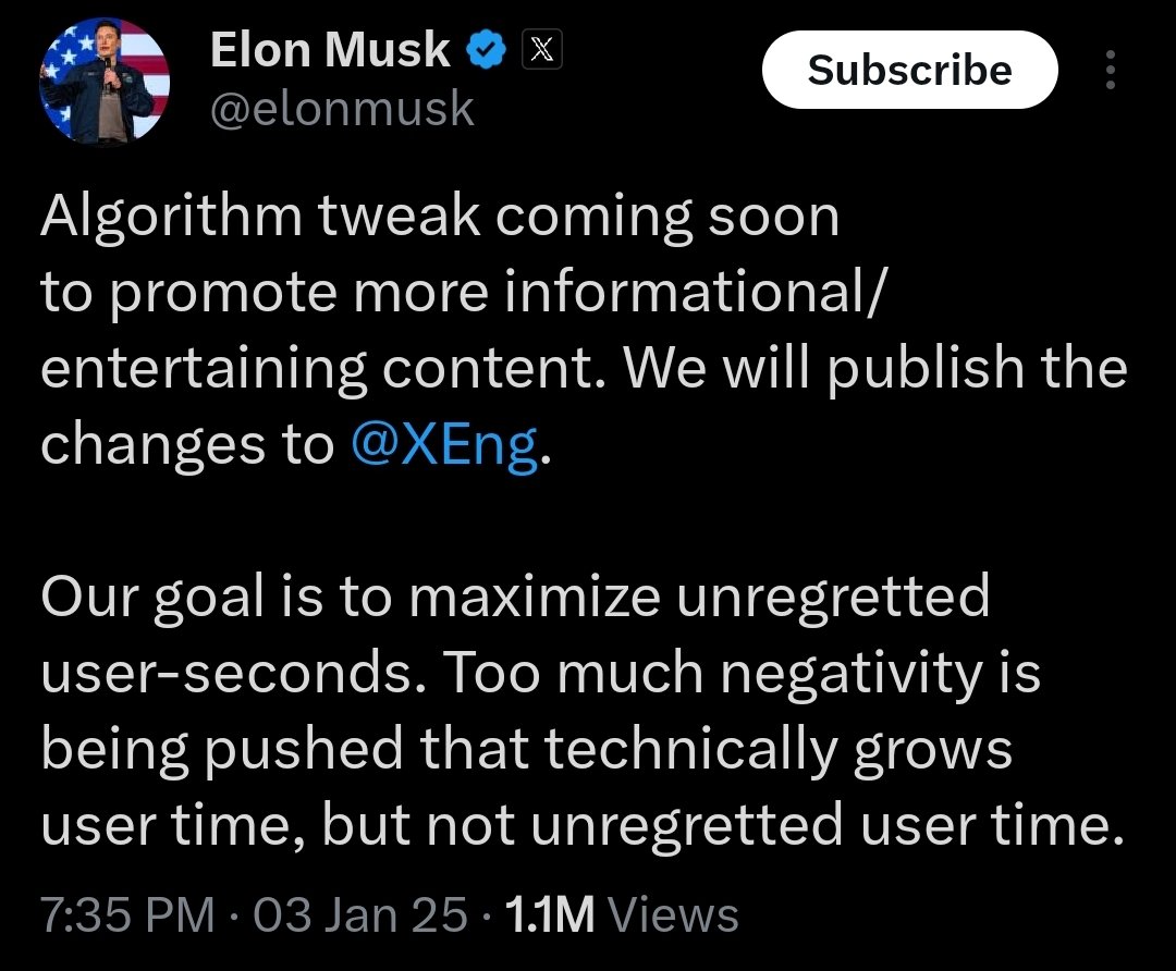 Are you getting it yet? Musk's 'free speech' X was always a trap and now it is being sprung. First he targets those that disagree with him and now he's punishing 'negativity' which is another way of saying censorship as he deboosts those that expose him and Trump. That's 'negativity', you see, because you are not worshipping the 'gods' who are shafting you. Meanwhile, this fraud can post what he likes every few minutes.