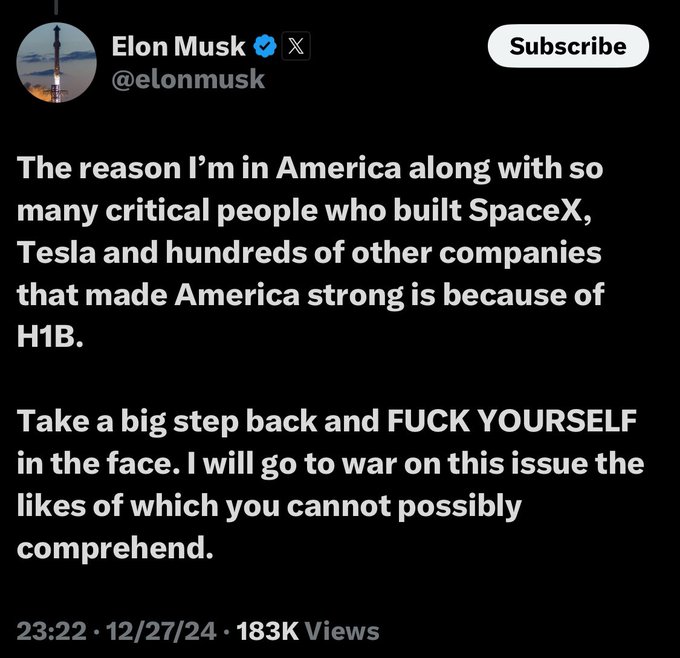 Yep, the system just hates him ... Elon Musk’s xAI raises $6 billion funding from BlackRock, Nvidia, AMD, and others. Are you getting it yet? I did tell you a long time ago - YOU'VE BEEN HAD. https://www.livemint.com/companies/news/elon-musks-xai-raises-6-billion-funding-from-blackrock-nvidia-amd-and-others-11735045011974.html