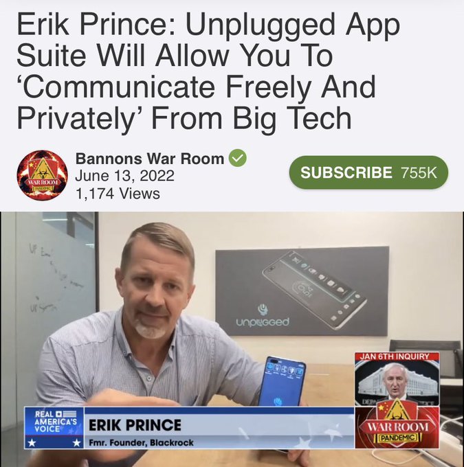 Erik Prince, the founder of notorious 'private army' Blackwater, is all over the 'alternative' media 'revealing' old news that Big Tech is taking your data. What is not mentioned is that he's flogging a 'secure phone' designed in Israel. Problem-Reaction-Solution. He claims that his phone could have stopped the Hamas attack on October 7th without any mention that the attack was allowed to happen by the Israeli government and military to 'justify' the slaughter in Gaza or that Hamas was created with the support of the Israeli government. https://theintercept.com/2024/01/24/erik-prince-phone-hamas/