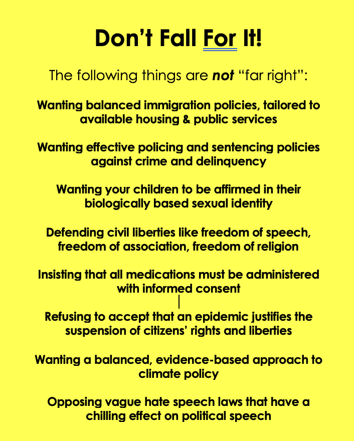 7/ Leftists & government spokespersons will denounce as "far right": - citizens who defend the principle of informed consent to medication and believe in the sanctity of the doctor-patient relationship https://t.co/2kaOeLgc2s