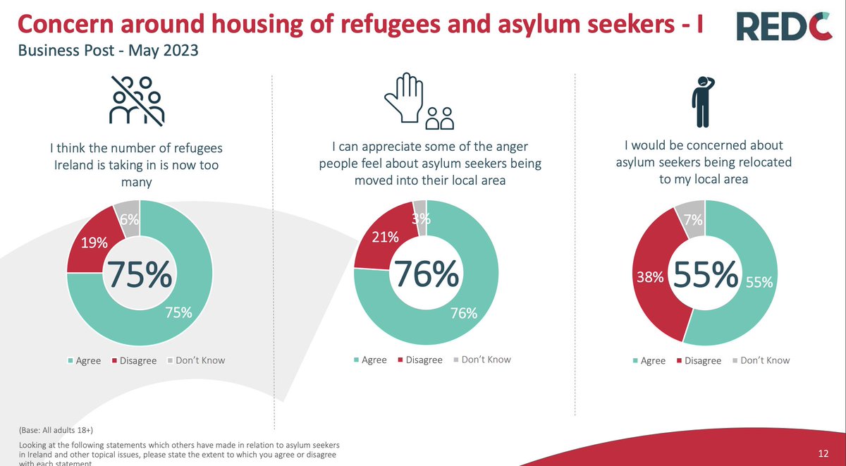 5/ Leftists & government spokespersons will denounce as "far right": - 75% of Irish citizens, who believe their country is admitting too many refugees & "can appreciate some of the anger people feel about asylum seekers being moved into their local area" (Red C poll, May 2023) https://t.co/9Sc3b2V2n8