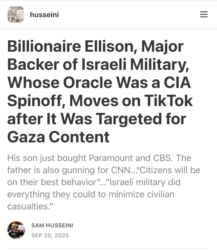 @samhusseini “Ellison talks like he's a citizen of Israel, not the US...” Comment by @samhusseini 👇 https://t.co/jnSDkDl5Yd