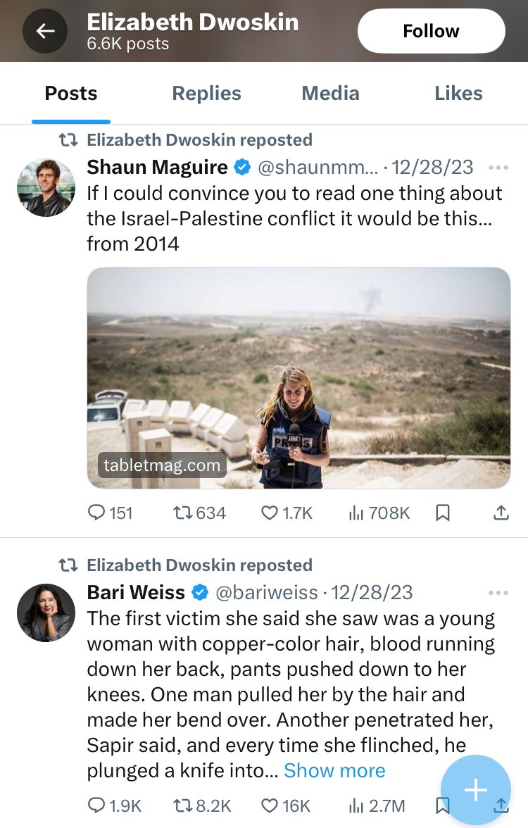 MUST SEE: @MaxBlumenthal & @aaronjmate just called the Washington Post's Elizabeth Dwoskin live on air, after she emailed The Grayzone saying she wanted to talk to them for an article she's working on about Oct 7. She said in an email to @AliAbunimah that her piece is about “efforts to minimize or misdirect information about [the] Hamas attacks on Israel.” Here's what happened: