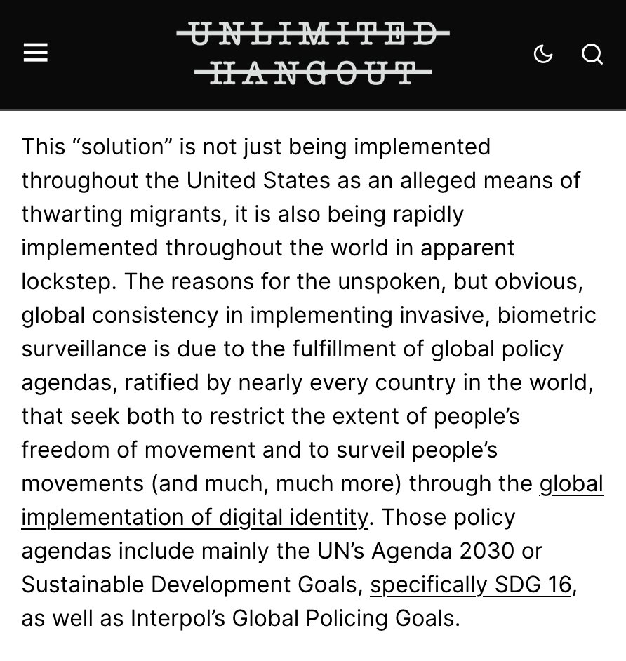 Whitney Webb (@_whitneywebb) writes in this new piece: “The disastrous situation at the US-Mexico border is, and has been, intentionally produced...” “While the justifications for the frenzied media coverage are based on the actual reality that the border is indeed highly insecure (and has been for some time), the policy responses from American politicians reveal that there is a bipartisan consensus about what must be done. Tellingly, the same ‘solution’ is also being quietly rolled out at all American ports of entry that are not currently being ‘overrun’, such as airports. That solution, of course, is biometric surveillance, enabled by AI, facial recognition/biometrics and autonomous devices.” This was also advocated by anointed “dissident media” figures Bret Weinstein & Tucker Carlson in their recent interview: