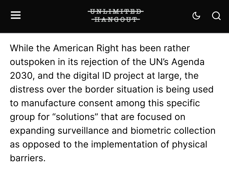 More from @_whitneywebb's new piece about how “the disastrous situation at the US-Mexico border is, and has been, intentionally produced”—in part to manufacture consent for a “smart wall,” biometric surveillance, etc. Read the full thing here: https://unlimitedhangout.com/2024/02/investigative-reports/manufacturing-consent-the-border-fiasco-and-the-smart-wall/