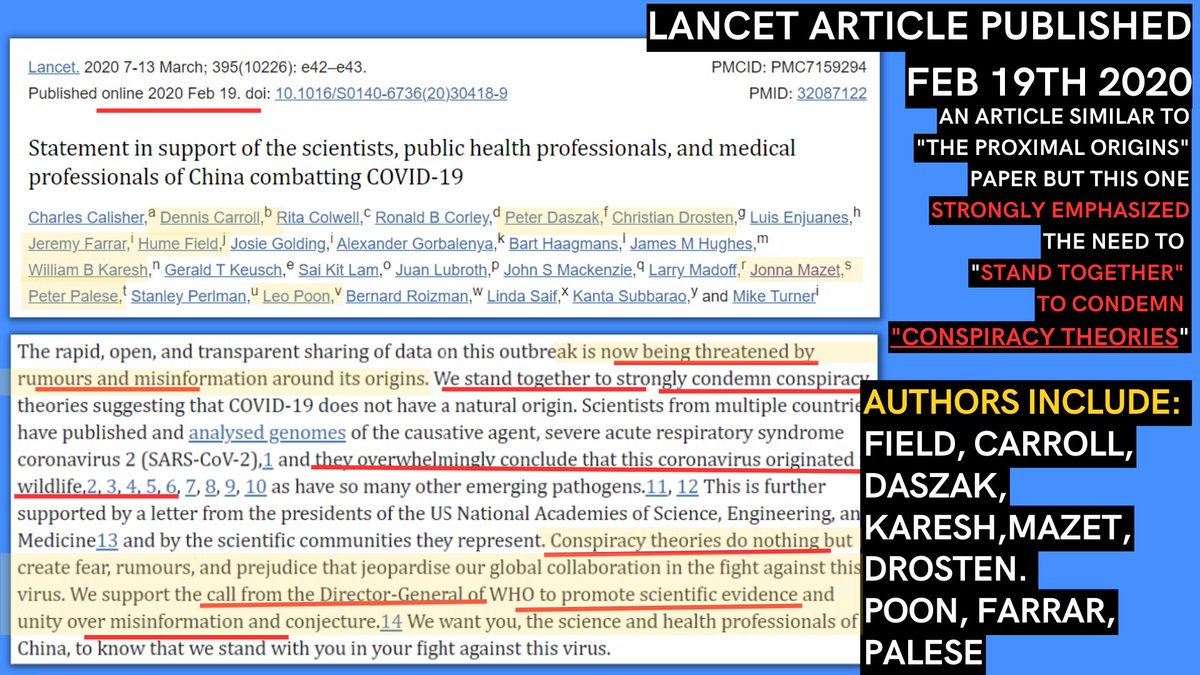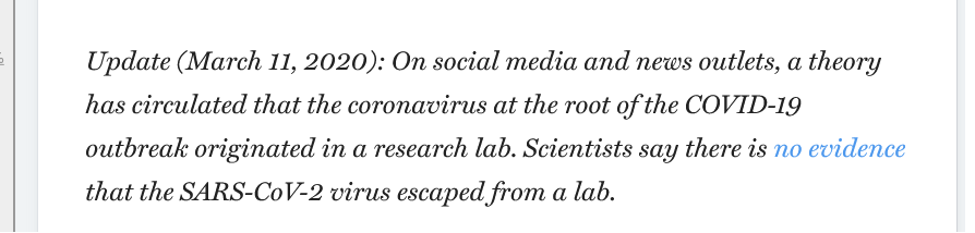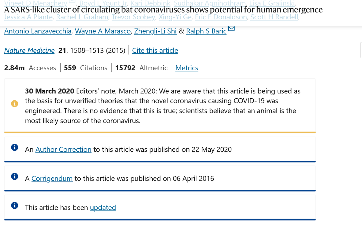 10🧵The paper was so impactful that the day the WHO declared a global pandemic, March 11, 2020, 5 yrs after it was written-the publishers felt the need to tag a note on the GoF article reassuring readers it had nothing to do with the new outbreak.