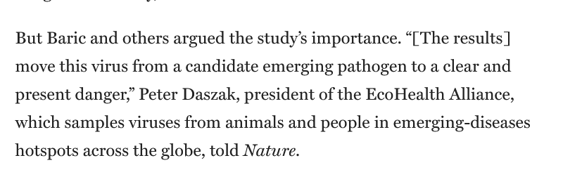 9🧵That begs the question: Why claim the collab began in 2017, & what initiated the collab in November of 2015? You recall that paper in 2015 that got everyone worked up about GoF? The one by Ralph Baric & Shi-Zhengli where they created a chimeric SARS they neglected to upload ?