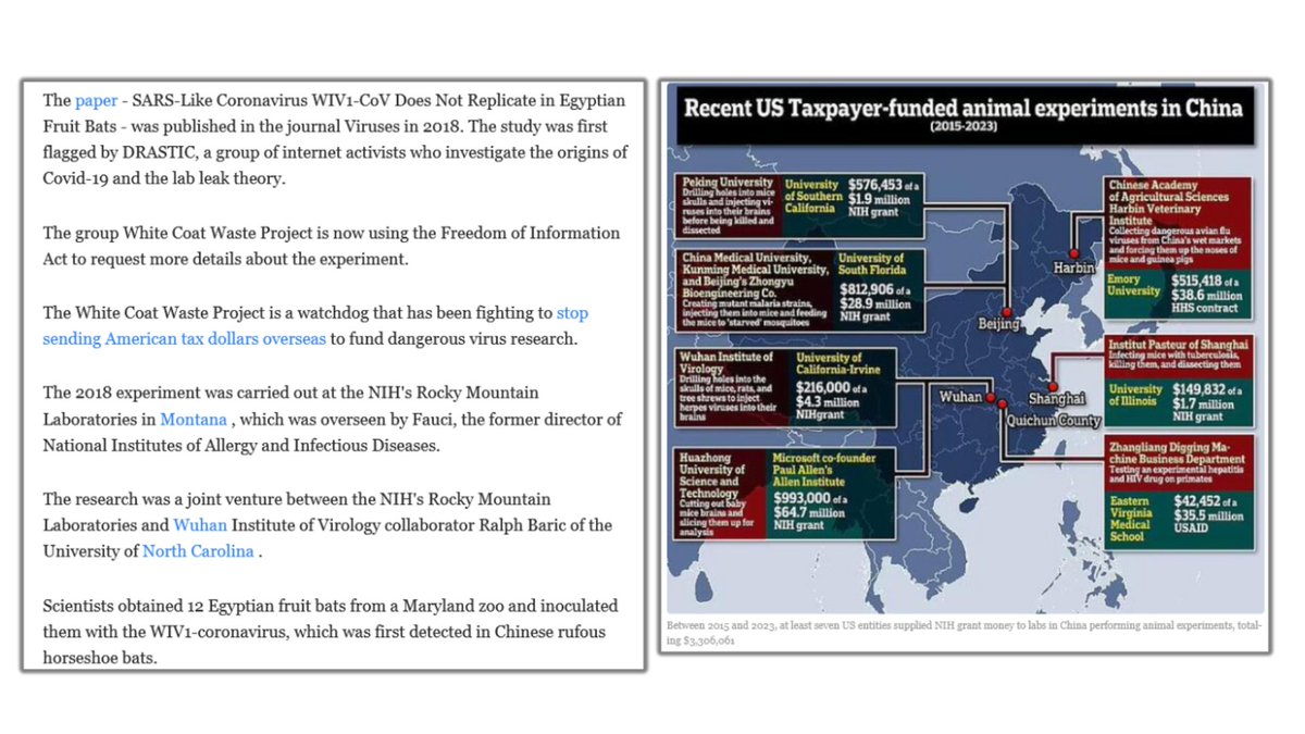 12🧾 Receipts: https://sph.unc.edu/sph-news/unc-epidemiology-study-new-sars-like-virus-may-be-nearly-ready-to-infect-humans/ https://www.dailymail.co.uk/health/article-12693441/fauci-nih-infected-bats-camp-david-coronavirus.html https://www.pnas.org/doi/epdf/10.1073/pnas.1517719113 https://en.wikipedia.org/wiki/Bat_SARS-like_coronavirus_WIV1 https://archive.ph/WXznA