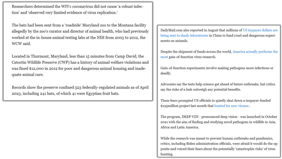 2🧵The recent findings point toward the deep ties between the NIH and Wuhan when it comes to GoF research on coronaviruses, all paid for by the American tax payer. The paper states the bats were sold by the Maryland Zoo to a Montana NIH laboratory.