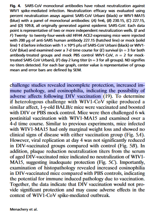 6🧵In the 2016 paper by Baric titled, "SARS-like WIV1-CoV poised for human emergence" they discuss how when challenged w/a vaccine the WIV-1 infected mice could suffer negatively from the vaccine. 🤔 So, CoV vaccines can hurt mice, but its "safe & effective" for people?🐭