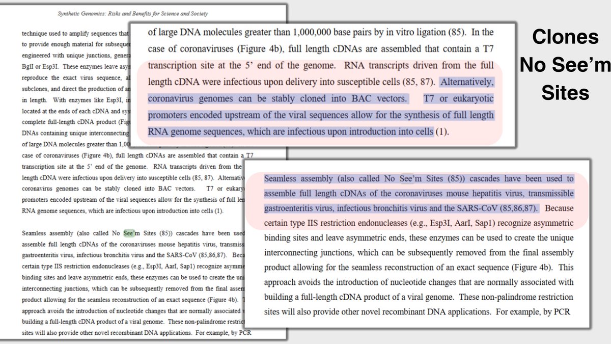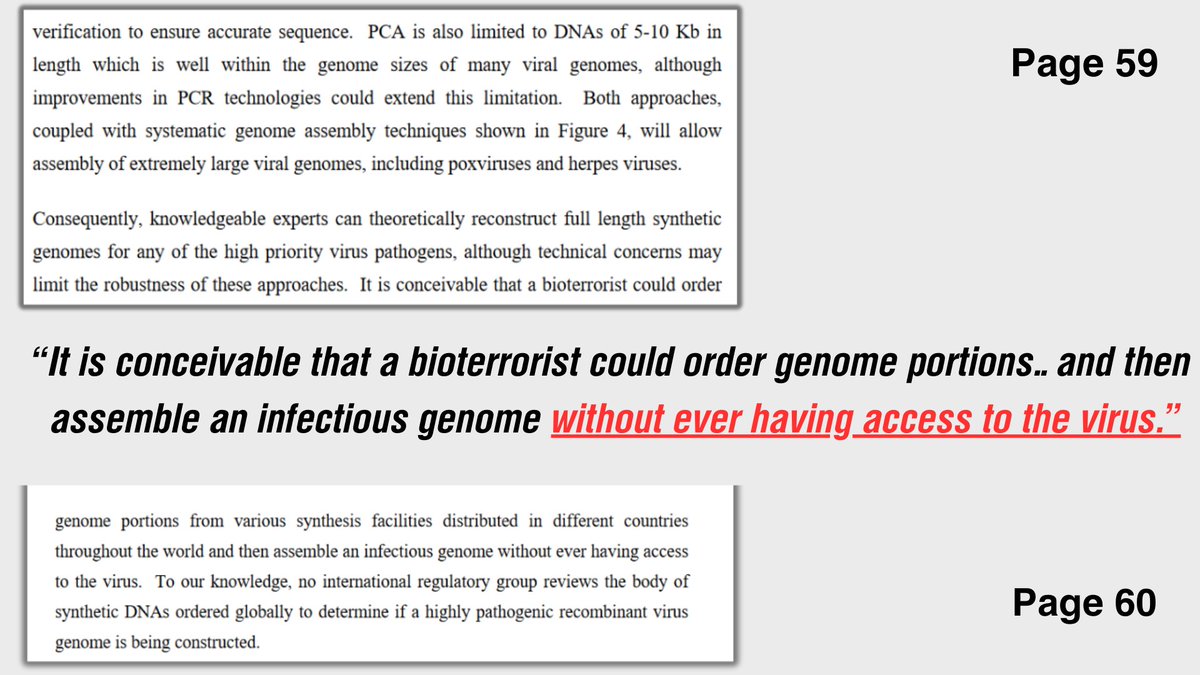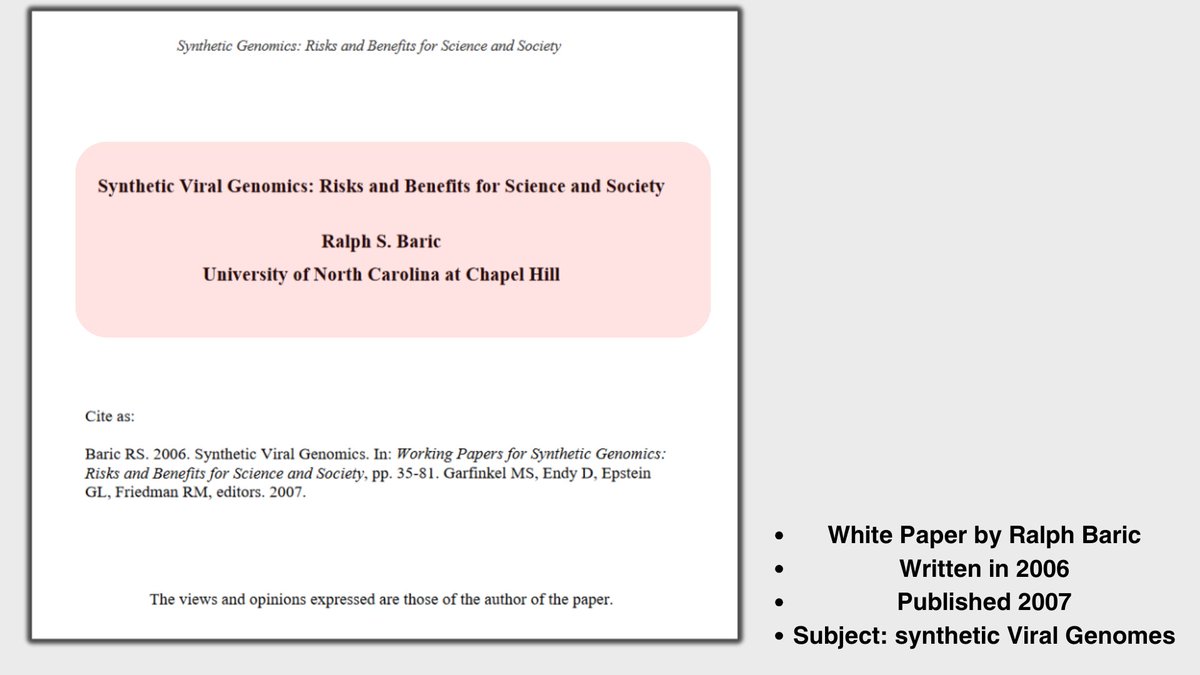 🔎🦠In 2006, Ralph Baric wrote a white paper titled: Synthetic Viral Genomics: Risks & Benefits for Science & Society which was part of a larger compendium published in 2007 of technical reports in support of a study by the Sloan Foundation on DNA synthesis & governance. The compilation of reports, including Baric’s was in part formed after a series of invitational discussions. Compiled by Garfinkel, Endy, Epstein and Friedman and uploaded to the MIT libraries. Published to MIT’s library since 12-04-2007 (15+yrs ago) and yet according to MIT the document has only received a total of 3.4K downloads and page views. Although the US ranks #1 for the page views for the document, we fall to #3 for downloads- trailing behind Romania and China. The paper came on the heels of the United Nations Security Council Resolution [UNSCR] 1540 of 2004 to which all states parties agreed to abstain from: 1. “… providing any form of support to non-State actors that attempt to develop, acquire, manufacture, possess, transport, transfer or use nuclear, chemical or biological weapons and their means of delivery 2. · …. all States, in accordance with their national procedures, shall adopt and enforce appropriate effective laws which prohibit any non-State actor to manufacture, acquire, possess, develop, transport, transfer or use nuclear, chemical or biological weapons and their means of delivery, in particular for terrorist purposes, as well as attempts to engage in any of the foregoing activities, participate in them as an accomplice, assist or finance them; 3. · …. all States shall take and enforce effective measures to establish domestic controls to prevent the proliferation of nuclear, chemical, or biological weapons and their means of delivery, including by establishing appropriate controls over related materials and to this end shall: Baric’s paper came just before the inclusion of agreement #19 in the Final Declaration of the Sixth Review Conference (2006) of the Biological Weapons Convention [BWC] which stated: “The Conference urges States Parties to promote the development of training and education programs for those granted access to biological agents and toxins relevant to the Convention and for those with the knowledge or capacity to modify such agents …as well as of the obligations of States Parties under the Convention. (BTWC 2006)” In the report, Baric’s article spans 49 pages and discusses viruses, synthetic genomics, biological warfare & biosecurity concerning selected agents. Having just gone through the SARS pandemic of 2003 which left many rattled because despite its short 6 month duration it carried with it a 9.5% fatality rate and managed to stretch across over 24 countries. Being that Baric had already spent years studying coronaviruses he was more than prepared to write on the topic by the time of the whitepaper. However, two years prior to the paper scientists had hit a major setback with unsuccessfully creating a usable vaccine- when infamously a SARS vaccine trial ended up killing the entire studies ferret participants- the inability to create a tolerable vaccine lasted until Covid-19 (& even then its debatable.) Among the startling statements made by Ralph Baric in this article was his omission and elaboration of his hallmark expertise of hiding all traces of splicing and manipulating coronaviruses [specifically SARS-CoV], a technique he refers to as “No see’m Sites” Page after page, Baric seems to brag about the benefits of synthetic genome assembly claiming its capacity to “provide unparalleled power for building genomes” also opens the door for “nefarious use.” He explains that traditional recombinant DNA assembly methods maintain the “signature of the parent virus” that is used in it’s construction during a cloning process but that this was NOT the case in synthetic viral genomics with his method. He horrifying states the following about his method’s capabilities; “synthetic viral genomes can be designed to be identical with exact virus strains circulating in any given location from any year. This powerful technique provides the bioterrorist with a “scapegoat” option; leaving a sequence signature that misdirects efforts at tracking the true originators of the crime. Even better, the approach could be used to build mistrust and/or precipitate open warfare between nations.” This new reality according to Baric came about specifically due to coronaviruses which happen to allow for such manipulation to occur much more easily than other families of viruses. He postulates about how a “clever” bioterrorist could easily steal, borrow, and buy coronaviruses claiming the advances of synthetic genomics and that its advancements lie in the “ speed and a mutagenesis capacity that allow for whole genome design in a cost effective manner” Baric states that the SARS-CoV 2003 strain was “extinct in the wild, but is present in many laboratories throughout the world” and that the “isolates were never successfully cultured and not distributed outside of China.” Leaving the SARS-CoV pathogen only found in either a synthetic form or in a laboratory and no longer existing in the wild. When Baric asks himself whether or not synthetic or recombinant bioweapons be created for Bio-Warfare he lays out two scenarios: 1- If the goal were to kill as many as possible than natural sourced viruses are a more “reliable source” and the conditions of getting a natural pathogen are easier 2- If the goal however isn’t to kill the most people possible but rather to aim for “notoriety, fear and directing foreign government policies are principle objectives, then the release and subsequent discovery of a synthetically derived virus bioweapon will certainly garner tremendous media coverage, inspire fear and terrorize human populations and direct severe pressure on government officials to respond in predicted ways” The document is an astonis