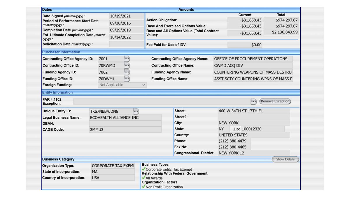 7🧵Two things that surprised me was; #1 the classification of the research under grant R01AI127521 which according to the NIH's grant repository RePORTER was listed as "Biodefense"