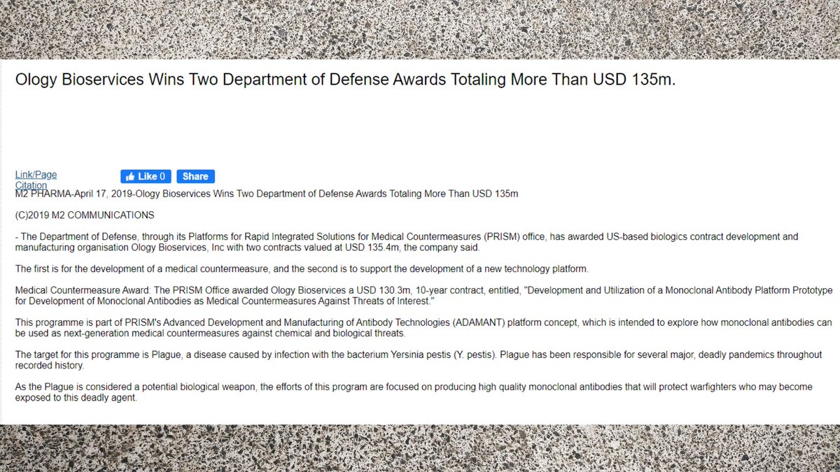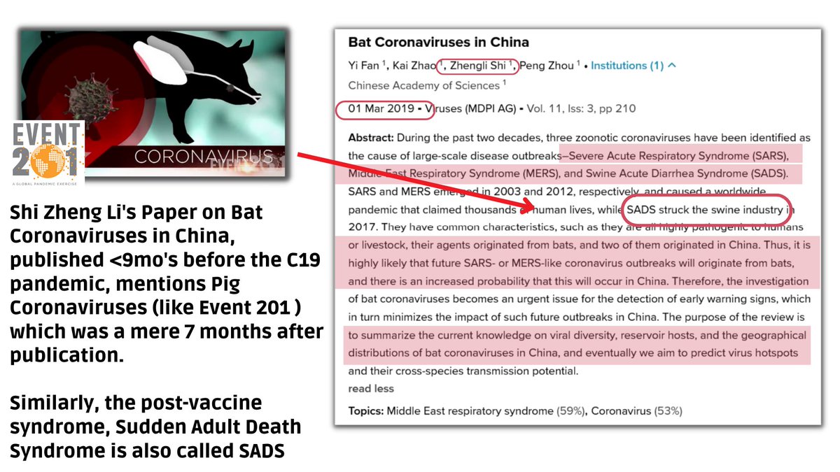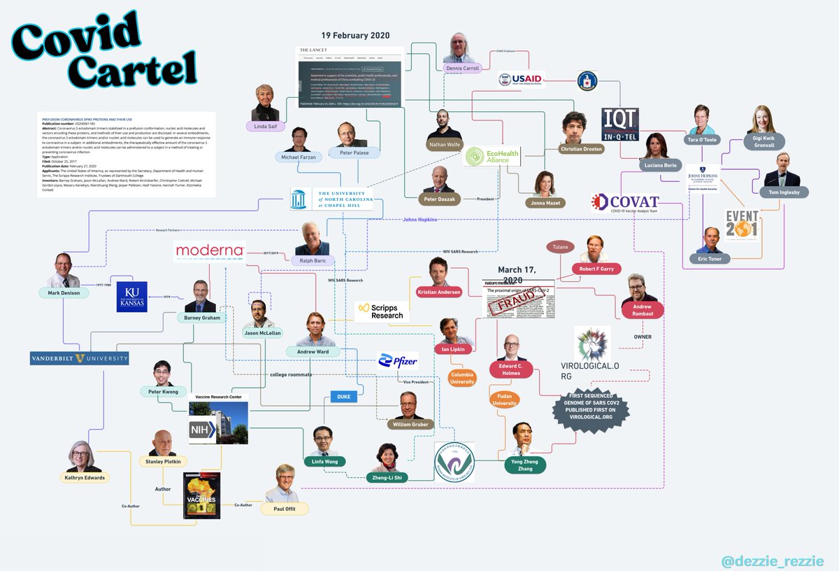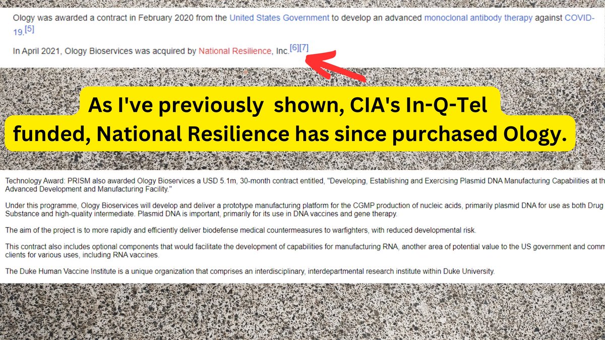 🚨🧾🔍 DATA DROP No.3 🚨🧾🔍 *Apologies for the later than expected release of these files. This is just a small culmination of recent documents I've found that are the best of the best. I look at hundreds of docs every week and these were among the best of them. Enjoy & please share. P.S- As always, receipts are included for all documents referenced & please feel free to tag your favorite research docs in the comments** Moderna aka "Muderna" SEC Filing Q3 2020 showing the financial and more accurate on-goings of Moderna in respect to mRNA technology, namely the C19 vaccine mRNA-1273. A direct quote from page 16 of 408 **[pay close attention to what they say in the last paragraph concerning Bill Gates and HIV/AIDS] the PDF reads; "In April 2020, we entered into an agreement with the Biomedical Advanced Research and Development Authority (BARDA), a division of the Office of the Assistant Secretary for Preparedness and Response (ASPR) within the U.S. Department of Health and Human Services (HHS), for an award of up to $483.3 million to accelerate development of mRNA-1273, our vaccine candidate against the novel coronavirus. In July 2020, we amended our agreement with BARDA to provide for an additional commitment of up to $471.6 million to support late-stage clinical development of mRNA-1273, including the execution of a 30,000 participant Phase 3 study in the U.S. The amendment increased the maximum award from BARDA from $483.3 million to $954.9 million. Under the terms of the agreement, BARDA will fund the advancement of mRNA-1273 to FDA licensure. All contract options have been exercised. As of September 30, 2020, the remaining available funding net of revenue earned was $781.7 million. In September 2016, we received an award of up to $125.8 million from BARDA, to help fund our Zika vaccine program. Three of the four contract options have been exercised. As of September 30, 2020, the remaining available funding net of revenue earned was $71.9 million, with an additional $8.4 million available if the final contract option is exercised. In January 2016, we entered a global health project framework agreement with the Gates Foundation to advance mRNA-based development projects for various infectious diseases, including human immunodeficiency virus (HIV). As of September 30, 2020, the available funding net of revenue earned was $12.6 million, with up to an additional $80.0 million available if additional follow-on projects are approved." Link^: https://s29.q4cdn.com/435878511/files/doc_financials/2020/q3/ec2e9559-c2a1-42b3-a24a-1988e5918fb5.pdf -------------------------------------------- PubMed Article from Ralph Baric (UNC Chapel Hill Scientist who is the father of GoF Coronavirus research), Stanley Perlman (regulator), and Barney Graham (NIH's Vaccine Research Center Scientist who aided in the creation of C19 vaccines) titled; Consensus summary report for CEPI/BC March 12-13, 2020 meeting: Assessment of risk of disease enhancement with COVID-19 vaccines. The fact that as early as MARCH 2020, Baric worked alongside Bill Gate's CEPI [the group who wants all future vaccines to be produced in <100days] and were discussing essentially the possibility of vaccine caused ADE/ Vaccine derived disease enhancement is infuriating and disturbing. ^Link: https://pubmed.ncbi.nlm.nih.gov/32507409/ ---------- Research grant as listed on http://USASpending.gov for EcoHealth Alliance 2014-2019 titled; UNDERSTANDING THE RISK OF BAT CORONAVIRUS EMERGENCE-Grant #: R01AI110964_7529: ^https://www.usaspending.gov/award/ASST_NON_R01AI110964_7529 ---------- Emails between Ralph Baric, his wife Toni Baric and staff discussing meeting with DARPA in mid 2017. * Files were obtained through a FOIA by the medical oversight watchdogs at US Right To Know: ^Link: https://usrtk.org/wp-content/uploads/2021/12/UNC_Baric_12.30.21.pdf -------- Report-BioCat 2.0 Sept 2013- Joint report from Pacific Northwest National Laboratory, Battelle Labs, and the DOE Prepared for the U.S. Department of Homeland Security under U.S. Department of Energy Contract #: DE-AC05-76RL01830. BioCat 2.0 is one of MANY long-standing entities concerning disease surveillance/bioweapons following the CIA's Project Impact and Project BlackFlag and coincided with the DHS's BIOWATCH program [ 1-3] and BioMapp. The 94pg PDF is concisely summarized in the abstract; "The goal of this project is to characterize, evaluate, classify, and catalog existing disease forecast and prediction models that could provide operational decision support for recognizing a biological event having a potentially significant impact." ^Link: https://www.pnnl.gov/main/publications/external/technical_reports/PNNL-22767.pdf ---------- A February 2021 presentation on behalf of The National Academy of Sciences, lead by Former director James Le Duc, on "How U.S. policies can foster research environments that enable collaborations around the world—Focus on Biosecurity." This presentation shows that the University of Texas Medical Branch works with the Wuhan Institute of Virology and is tasked with training the WIV staff with proper BSL-4 biosecurity training and protocol: ^Link: https://www.nationalacademies.org/documents/embed/link/LF2255DA3DD1C41C0A42D3BEF0989ACAECE3053A6A9B/file/DC3F942EF28706DB42B20B193D5FDB0B799E795482C7?noSaveAs=1 ----------- PLOS Neglected Tropical Diseases research article published in January of 2018 by scientists from; Emory Vaccine Center, Emory University School of Medicine, Recombinant Gene Products Group, Molecular Medicine Division, International Centre for Genetic Engineering and Biotechnology out of India, Global Vaccines Inc out of the Triangle Park/NCBiotech in Durham NC, & 3 scientists from Baric's lab at UNC Chapel Hill. The article is titled, "A tetravalent virus-like particle vaccine designed to display domain III of dengue envelope proteins induces multi-serotype neutralizing antibodies in mice and macaques which confer protection against