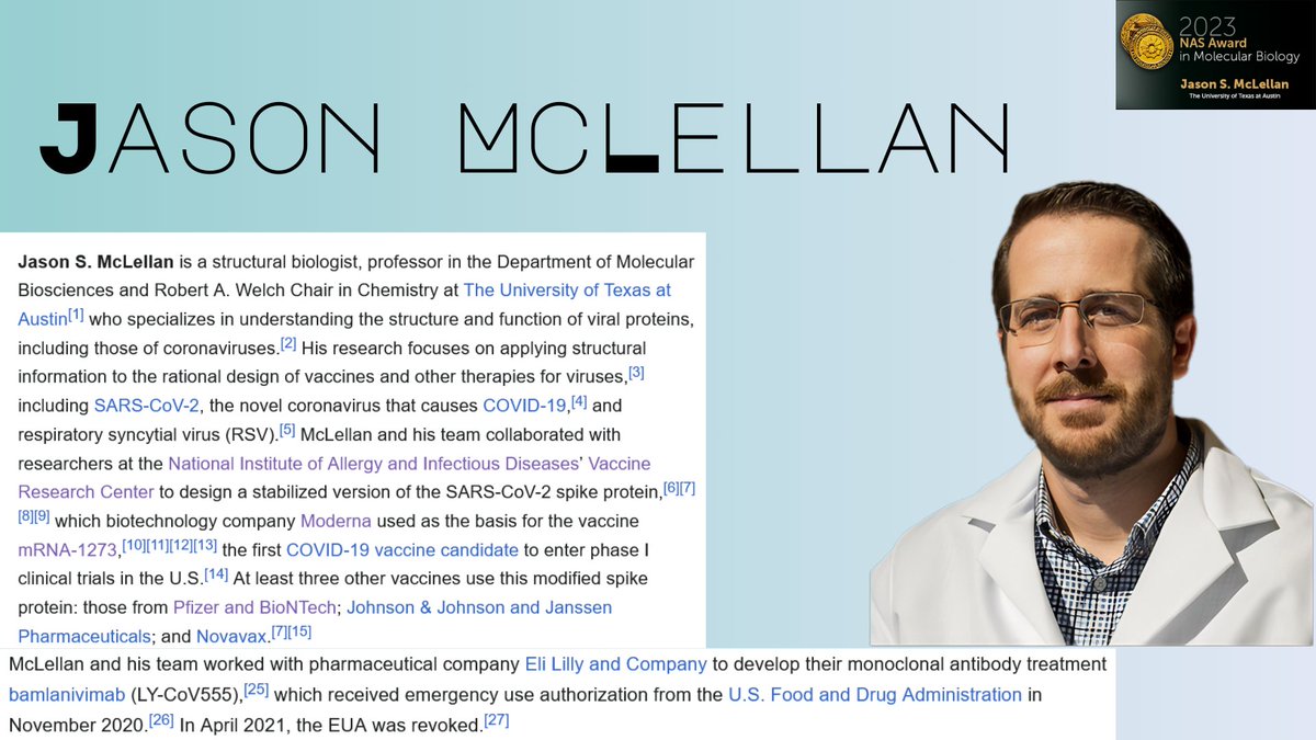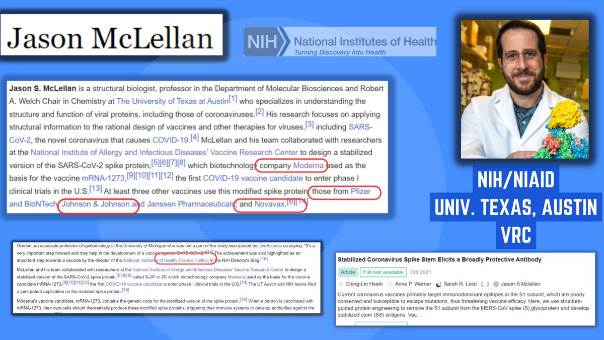 5🧵Jason McLellan, like Ward is a rarely mentioned yet integral architect of the C19 Vaccines, both w/patents crediting them. McLellan's NIH grants doubled after 2017. Top collab's are UT Austin & Dartmouth University.