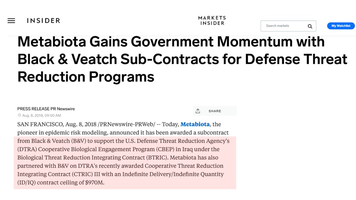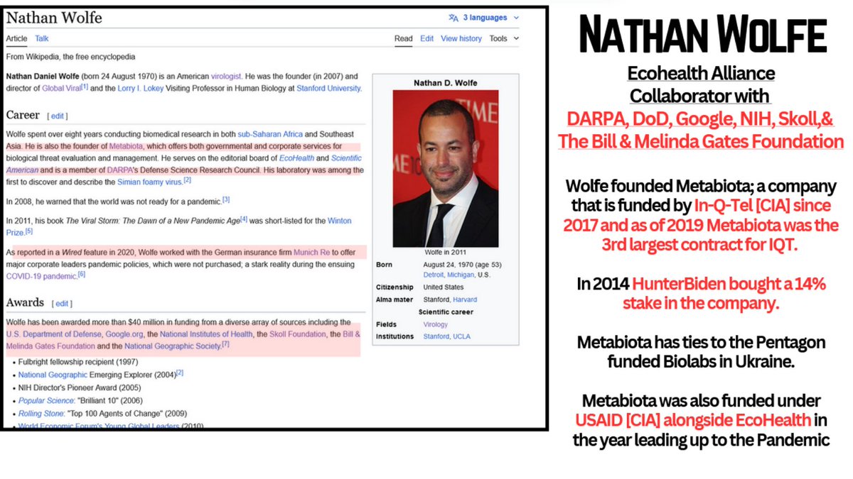 11🧵Because let's not forget USAID funded EcoHealth Alliance which worked alongside Metabiota. RFK jr recently stated USAID is an offshoot if CIA. IQT serves CIA and funds Metabiota. Dr.Huff of EHA said that in 2015 the CIA approached EHA to work & were interested in China. https://t.co/8FAEueyGhm