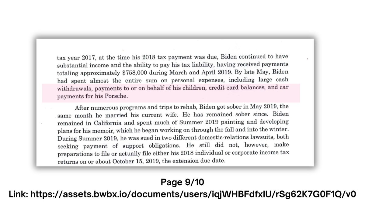 10🧵The plea agreement details, with kid gloves, the ins & outs of Hunters life in Exhibit 1. In the section which describes hunters avid crack addiction, that among the reasons he hadn't paid taxes was that he had to pay his hefty Porsche car payments..