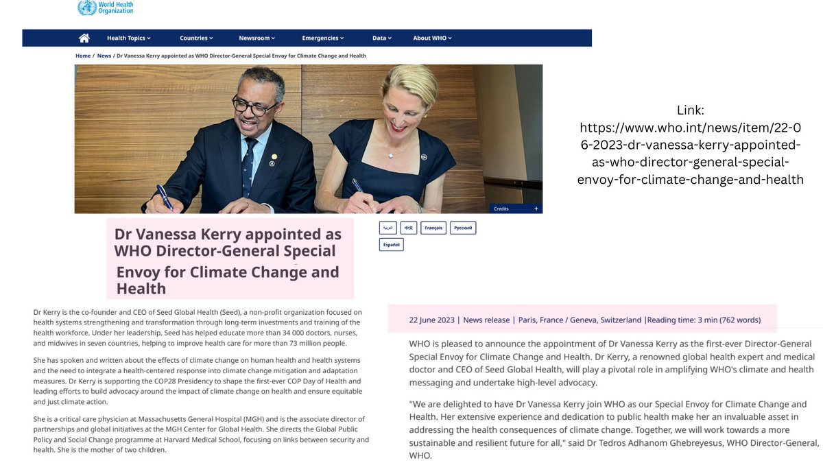 3🧵Dr.Kerry is not only a WEF rising star, former member of the CFR, and former employee with the Bill & Melinda Gates Foundation but the WHO actually created a BRAND new special position for the little heiress similar to her dad's newly made role as Climate Czar.