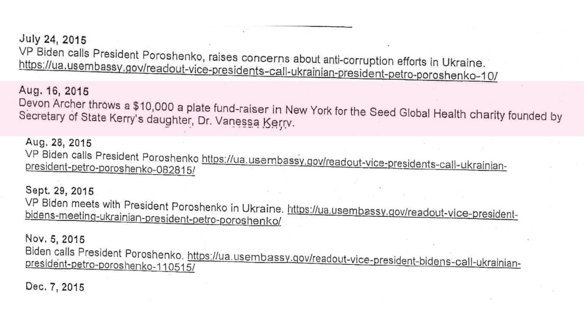 7🧵The documents claim: In 2014 Blinken is made deputy of Sect of State under John Kerry while Obama makes Joe Biden the Ukrainian point-man. 1yr later, Dr.Vanessa Kerry & Devon Archer throw a ritzy fund raising event for her company at $10,000 a plate!