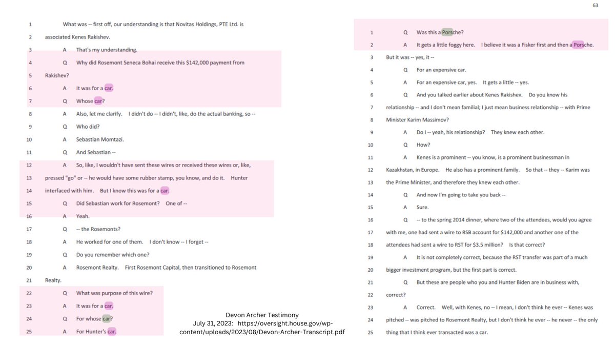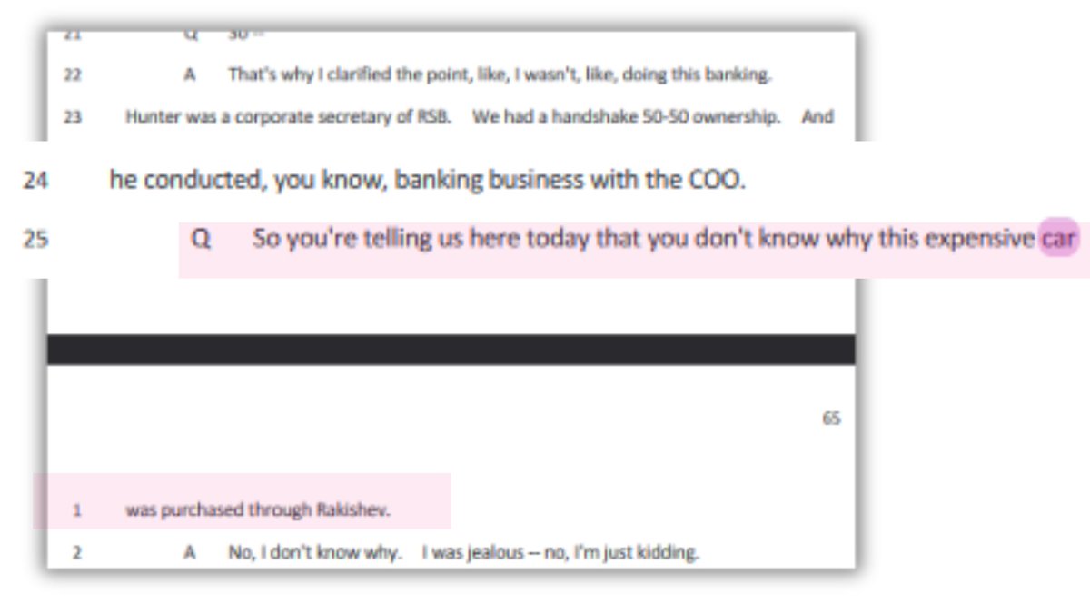 8🧵Speaking of Archer, the other Burisma/RSTP business partner something stood out to me from his recent testimony where Archer admits that Hunter was given $147k thru their company for a brand new Porsche in 2014.