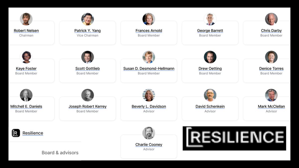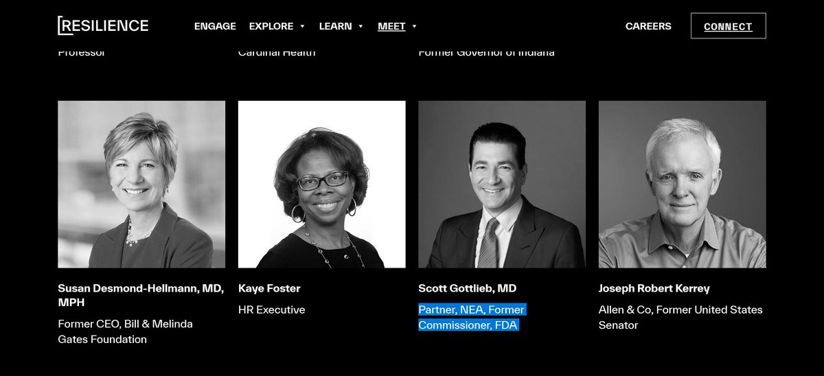 14🧵#Resilience, or Government Resilience Services, manufactures the C19 jabs for #Moderna. On their board sits Scott Gottleib and Mark McLellan, two former FDA commissioners. Both plus Califf, and Sharpless also held the position at the #FDA.