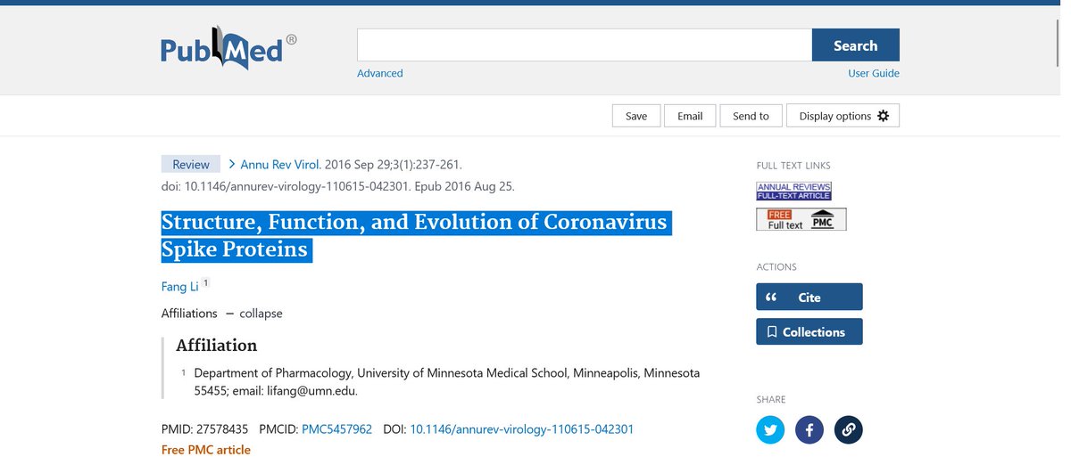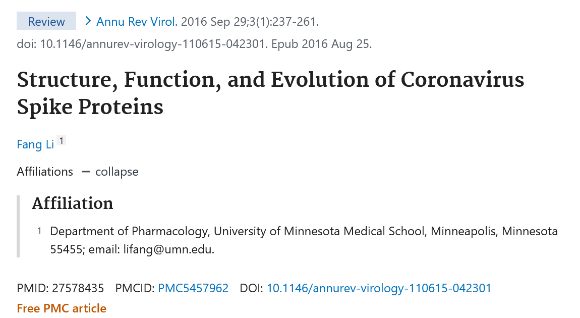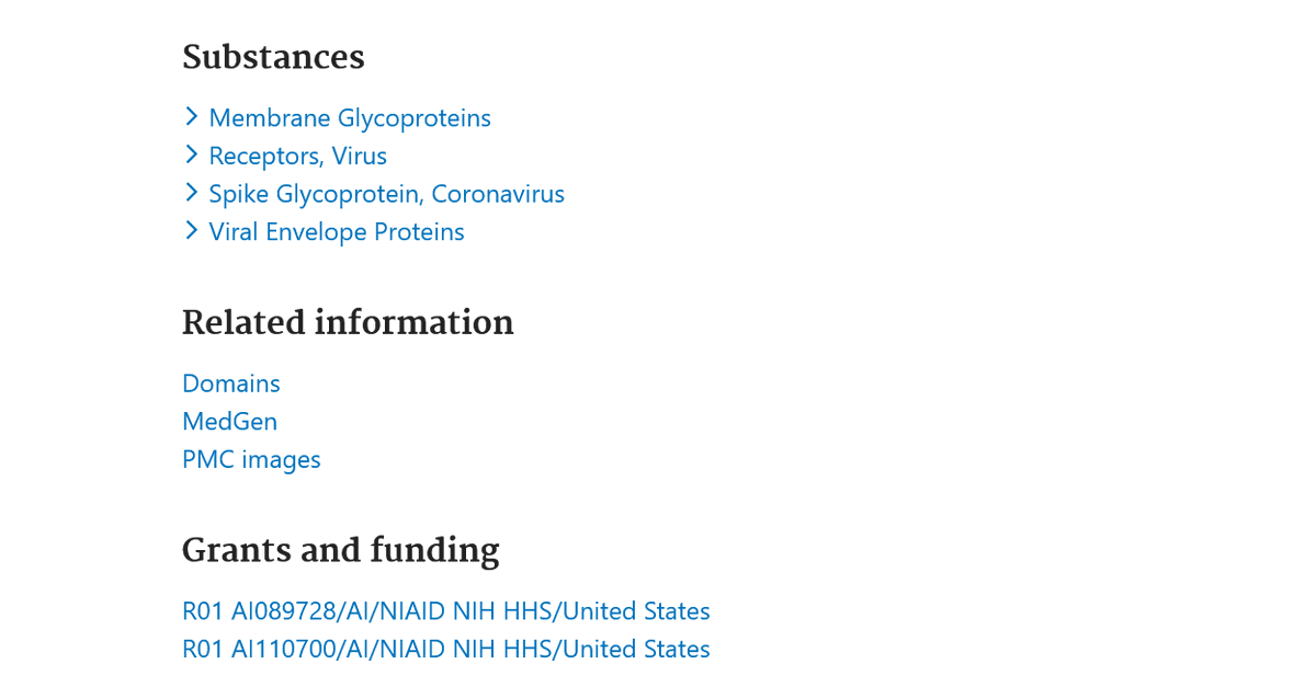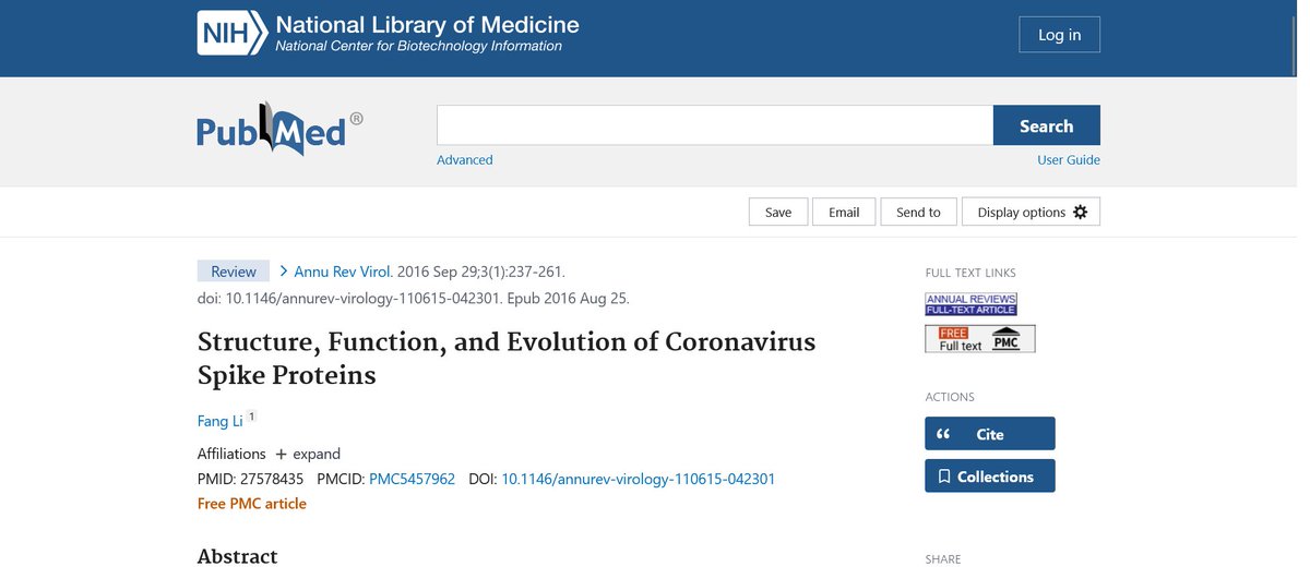 8🧵#2- If you were to type the 2017 grant title "Structure, Function & Antigenicity of Coronavirus Spike Proteins" into NIH's Pubmed you get a paper titled "Structure, Function, and Evolution of Coronavirus Spike Proteins" from Sept 29 2016. The titles are one word off...