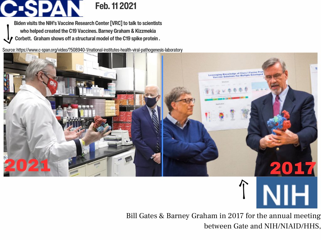 6🧵All these people converge with the Vaccine Research Center, an NIH component-most notable w/the head scientist, Barney Graham. In 2021, Graham & team explain to new POTUS Biden how the Vaxx came to be. Listen & Watch Closely. [*listen for 2017, & Moderna]