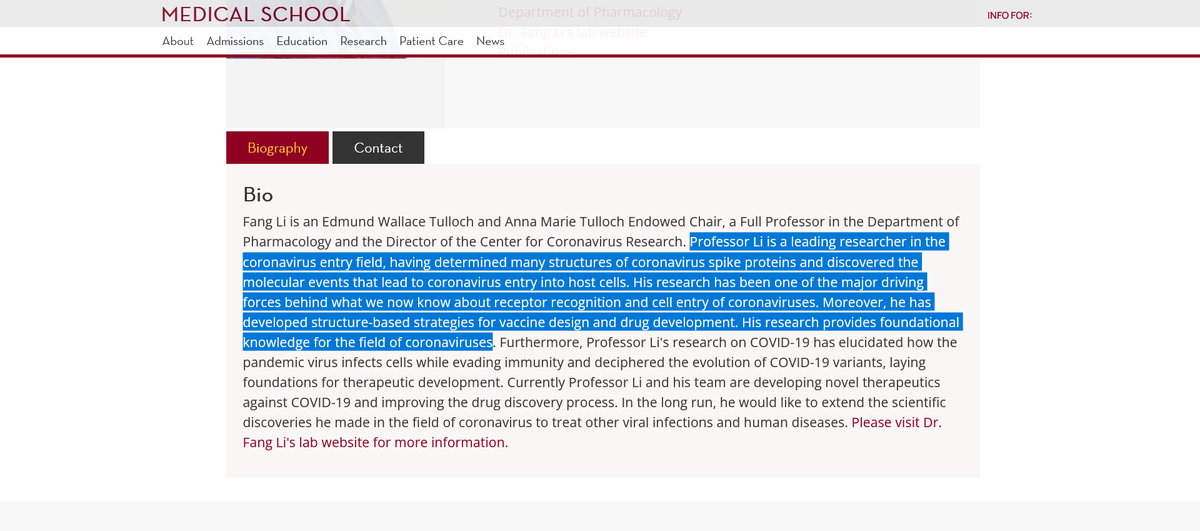 11🧵If Fang-Li sounds familiar it's likely because he has worked significantly with Baric & Zheng-Li Shi & Eco Health Alliance on Coronaviruses & now is the Director, Center for Coronavirus Research😳