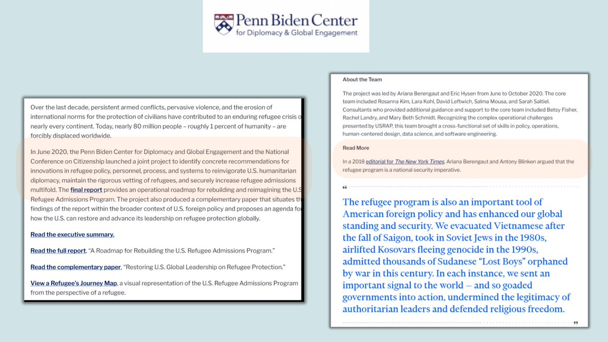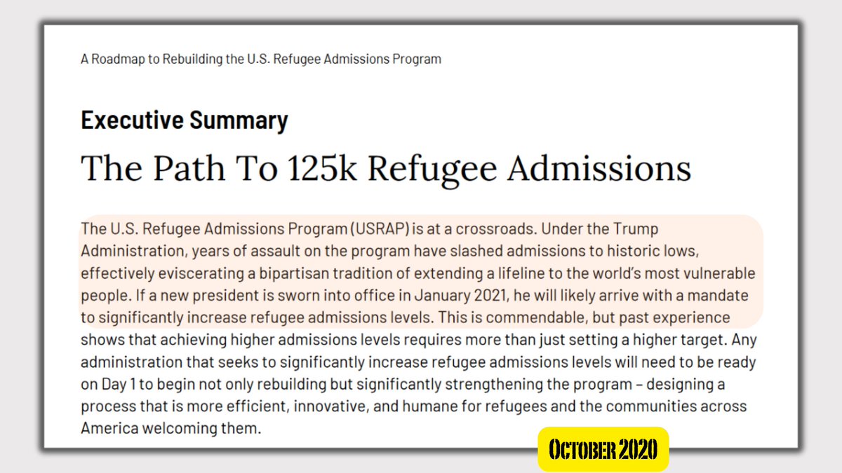 3🧵The Soros funded Biden-Penn Center paper discussed how the Trump Administration had tightened policies on new immigrants/refugees bringing us to historic lows & that IF Biden were president that he would focus on making the US the world leader in acceptance of immigrants.