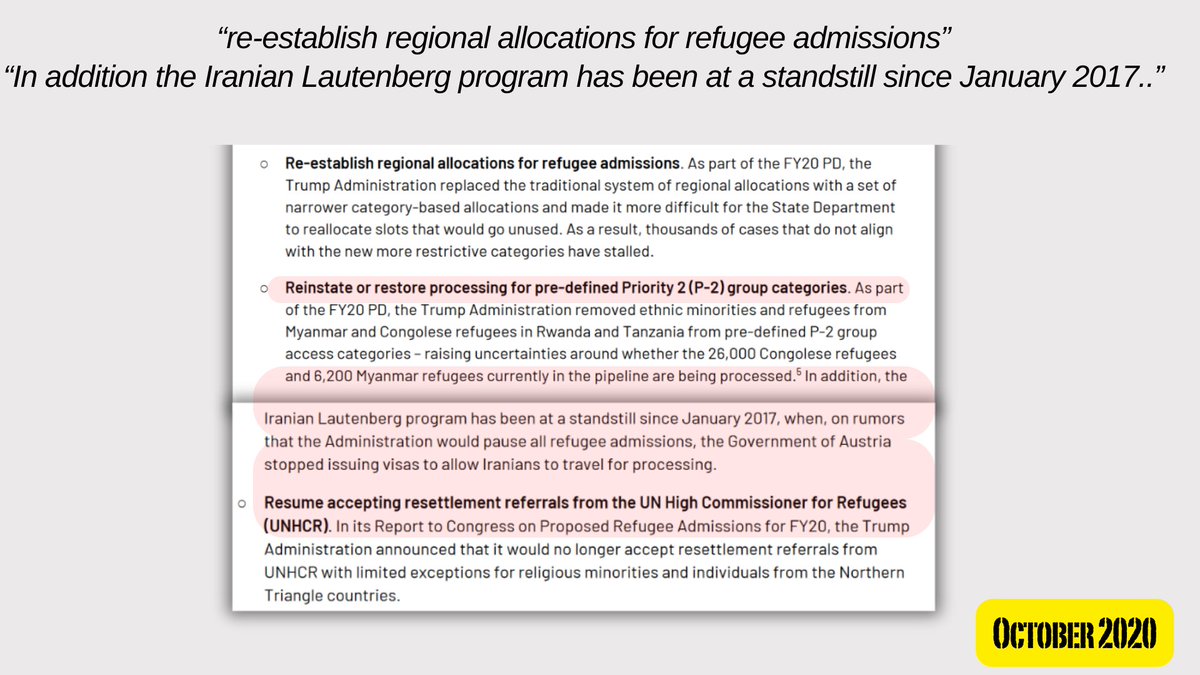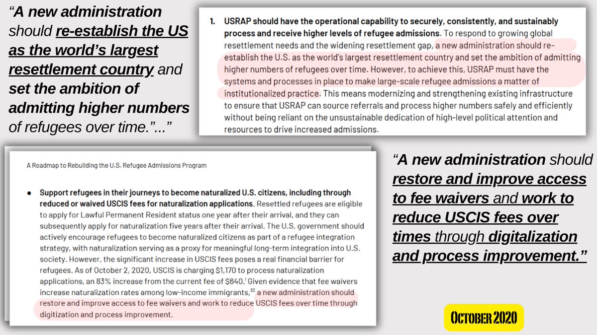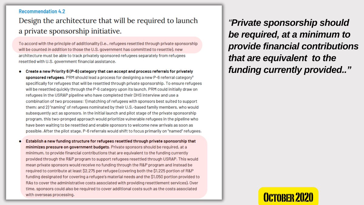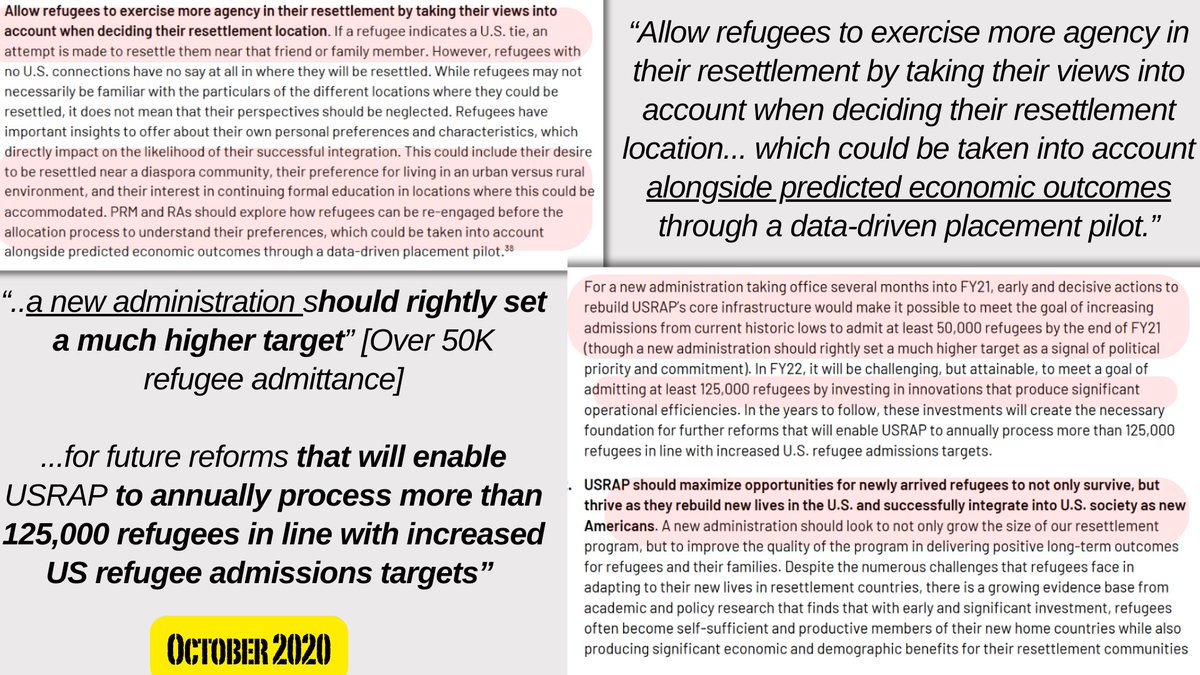 4🧵The paper states "new administration" should "rightly set a much higher" refugee acceptance rate, remove/limit the fees that fall upon refugees, & allow immigrants' preferences for where they settle to be taken into high consideration.