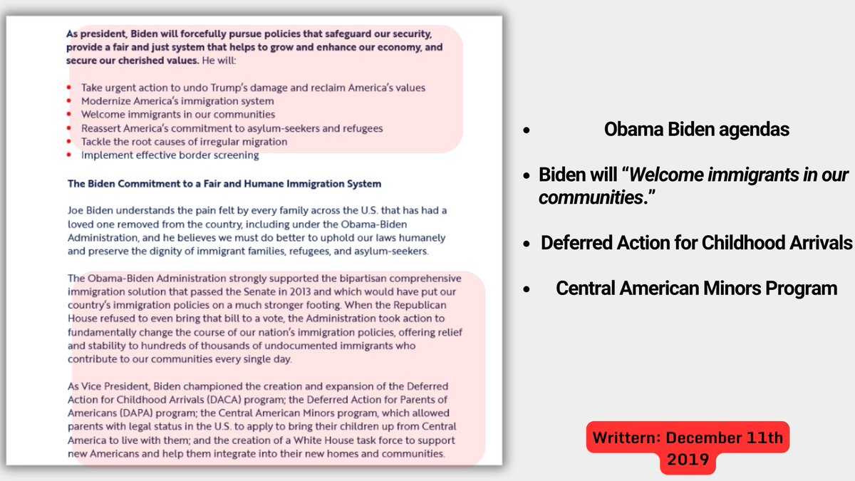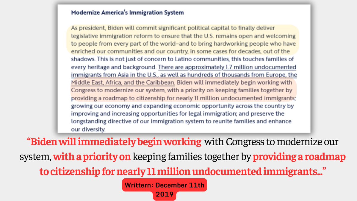 8🧵The Biden 2020 doc shares so much with the Penn-Biden doc, although it does differ in how much of a priority of accepting the children of Central America is. Biden also proposes modernization with hopes to make 11 million undocumented immigrants, new Americans.