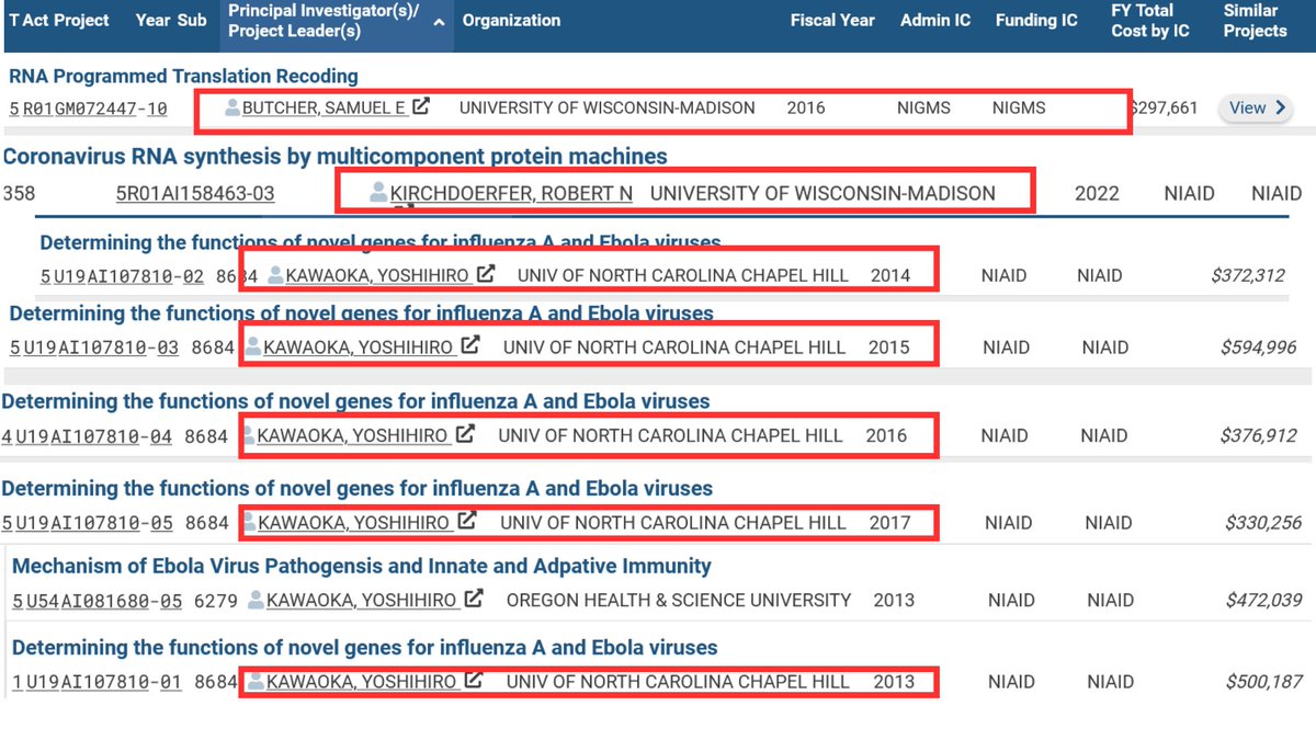 12🧵Coincidence? I think not. An attempt to hide the creation of certain GoF research turned bio-weapon? MUCH more likely. Stay tuned-I'm still not done 🔎👀🧾 https://grantome.com/search?q=R01AI110700 https://msi.umn.edu/~lifang/ https://pubmed.ncbi.nlm.nih.gov/27578435/ https://grantome.com/search?q=AI089728