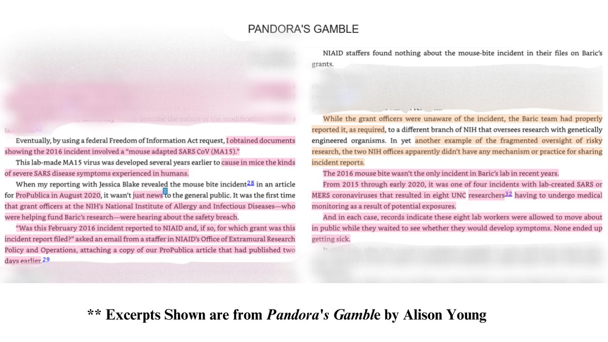 9 🧵 In Alison Young's book, Pandora's Gamble [which I've nearly finished] tells the reader in chapters 13-15 how she fought, using journalist prowess and series of FOIA requests against the #NIH and labs to uncover a slew of lab incidents that had been hushed up for years!