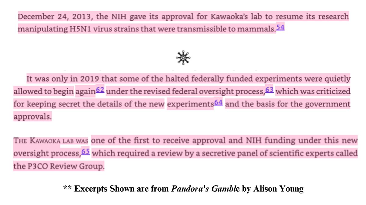 8 🧵 Unfortunately, this lab incident isn't new in the US, nor was it new at the lab from the 2019 incident. Kawaoka's research, after all has been so risky that it was in part the progenitor of the 2014 GoF moratorium after he "accidentally" made #H5N1 more transmissible.