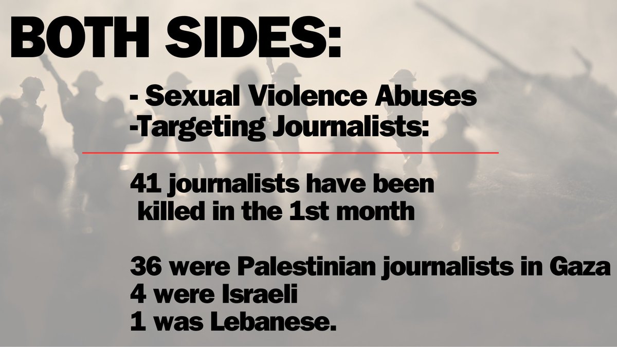 What the narrative is blaming both sides for: Sexual Violence Abuse, & Targeting Journalists. In the past month they claim 41 journalists have been killed: 36 Palestinian, 4 Israeli, 1 Lebanese https://t.co/fksxF0RPlA