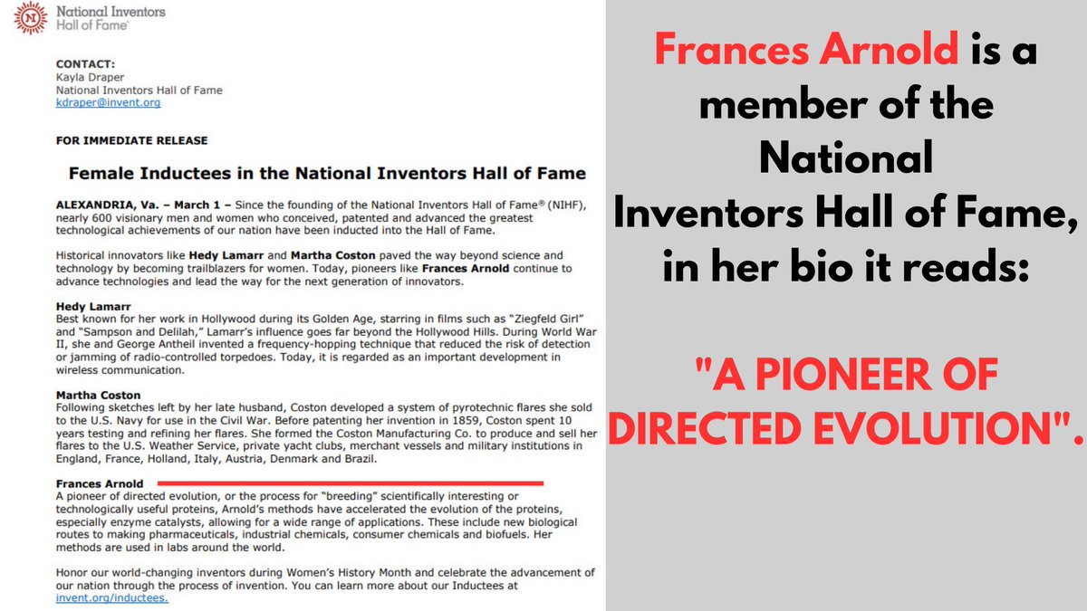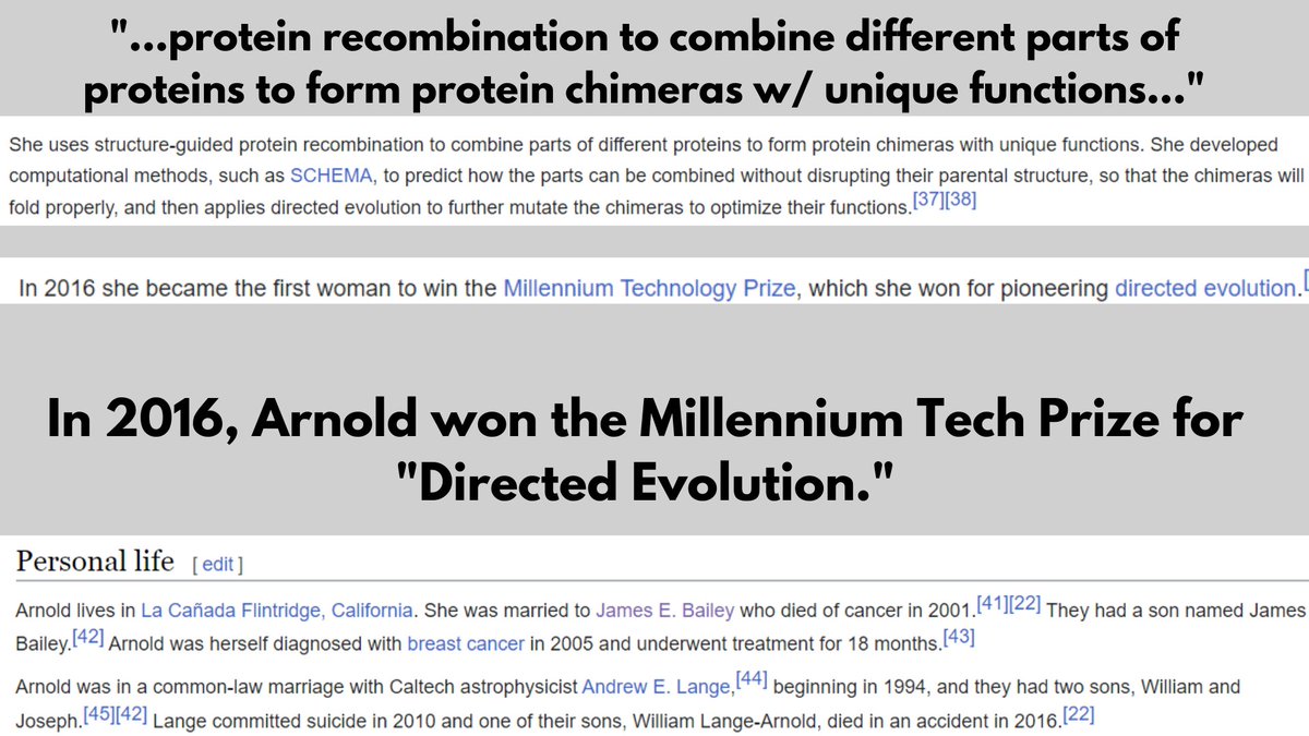 2/5 🧵 Arnold is a Nobel Prize winning Scientist (chemical engineer, biochemist, bioengineer.) Her most notable contributions to science have been her pioneering of "Directed Evolution." Sound Familiar?