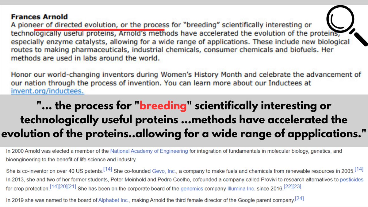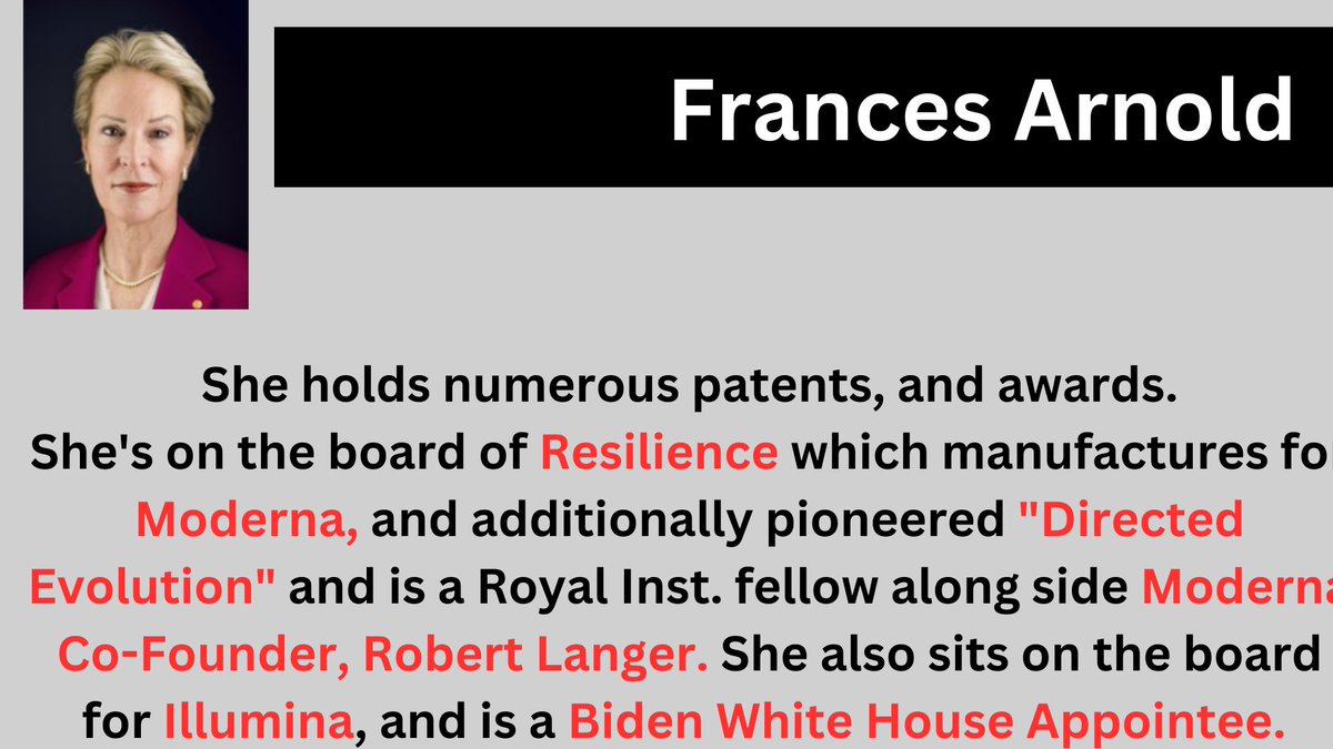 5/5🧵The wild part is her notoriety for pioneering "#DirectedEvolution" which is a process for "breeding" proteins. A term we all remember from PV's expose on #Pfizer employee J.Walker. CIA, Manufacturer 4 Moderna's jab, w/FDA & WH cabinet member?