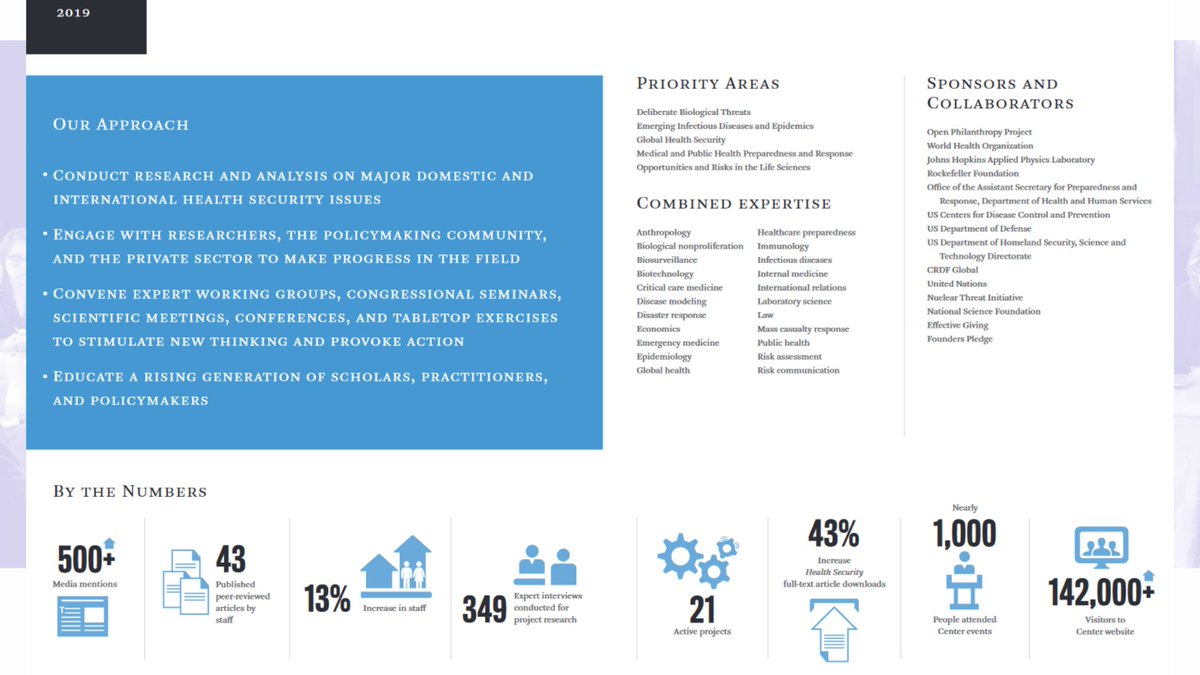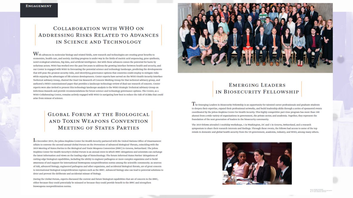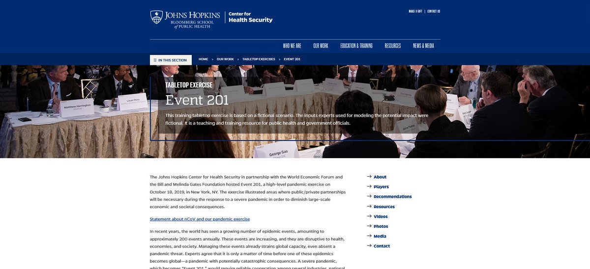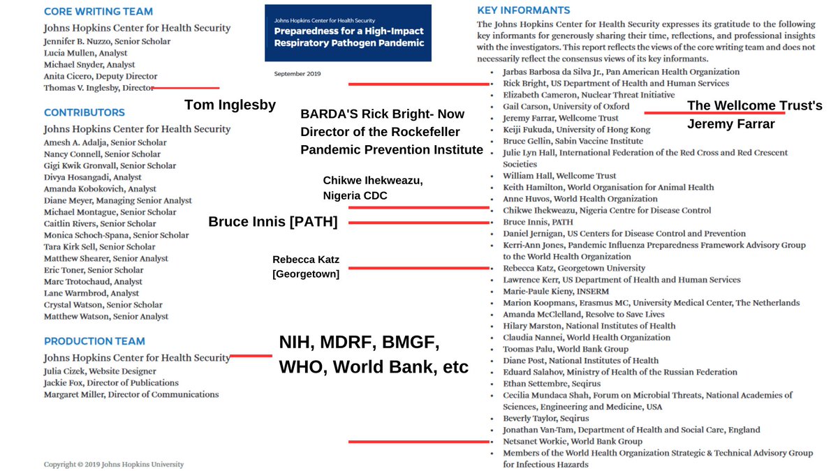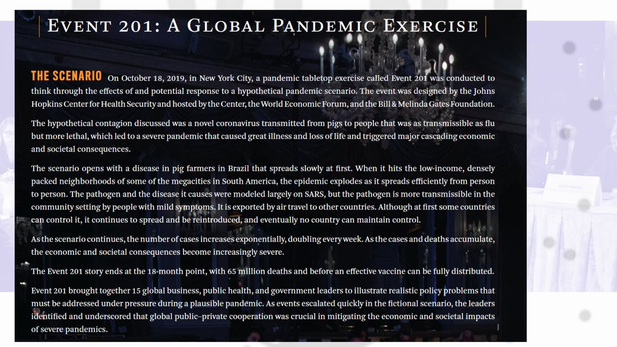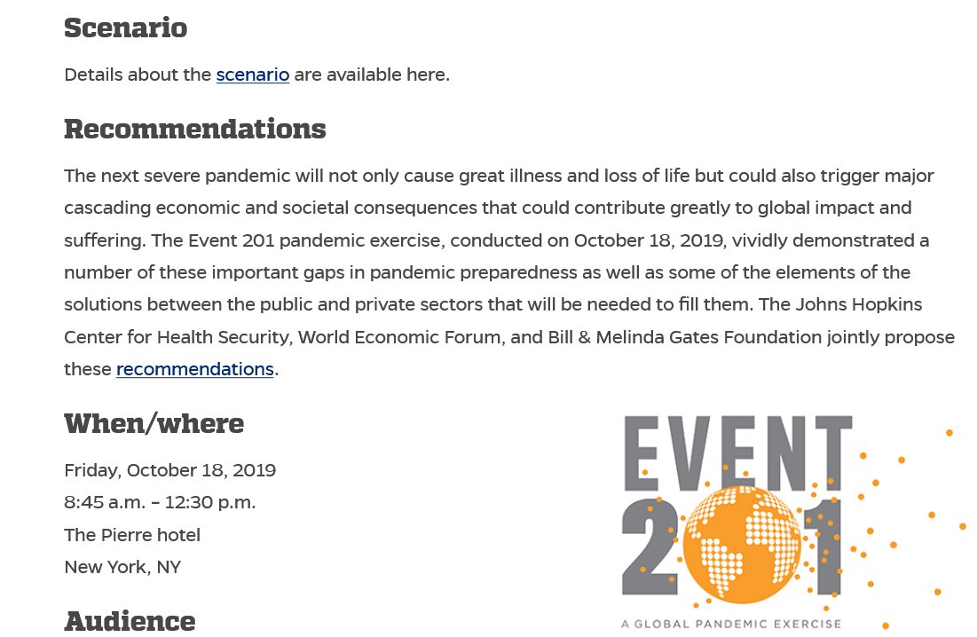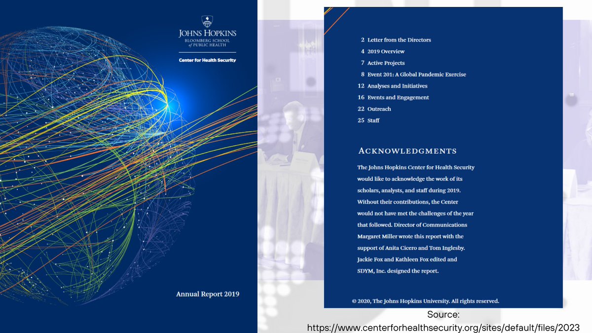 2🧵Through the Johns Hopkins Center for Health Security[JHCHS]'s webpage I stumbled upon another document from the same time, 2019, their annual report, which even details Event 201, and plans moving to 2030.