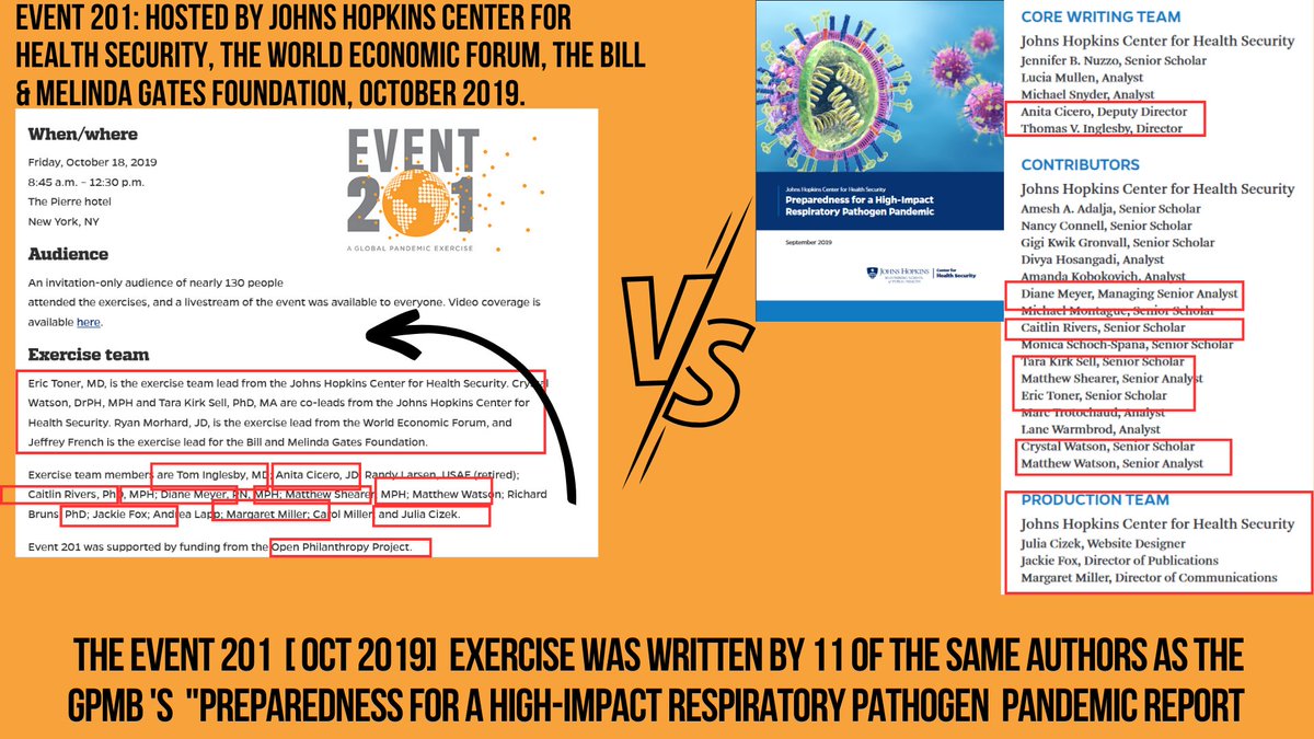 11🧵 I reported in July, the SAME writers [Eric Toner] for Event 201 was the SAME as the authors of Fauci's GPMB's whitepaper of Sept 2019 titled"Preparedness for a..Respiratory Pathogen Pandemic" which highlights the scenario of a lab leak. Toner was the 2019 IQT guest member.🚨 https://t.co/uzeObJk4iJ
