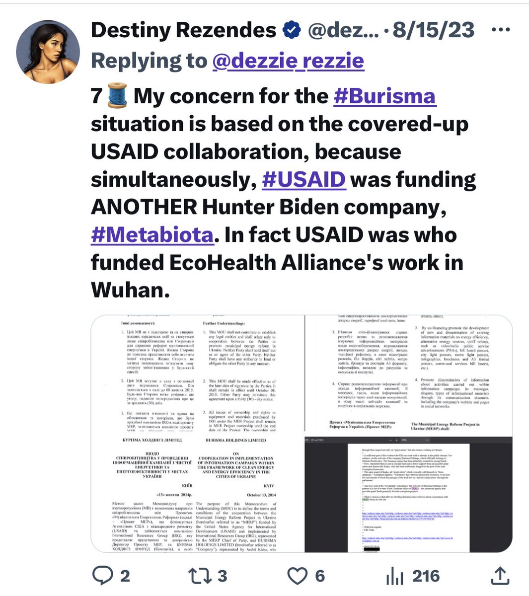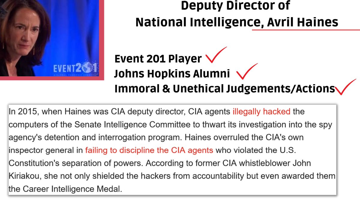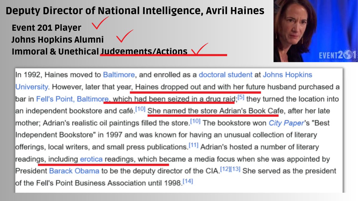Event 201 Threads https://x.com/dezzie_rezzie/status/1680097058802348032?s=20 https://x.com/dezzie_rezzie/status/1647120637729579009?s=20 https://x.com/dezzie_rezzie/status/1647120639134687235?s=20 https://x.com/dezzie_rezzie/status/1680097049595764737?s=20 https://x.com/dezzie_rezzie/status/1682423664396910593?s=20 https://x.com/dezzie_rezzie/status/1652114571958599680?s=20 https://x.com/dezzie_rezzie/status/1694115373157687432?s=20 Avril Haines: https://x.com/dezzie_rezzie/status/1647120641974317056?s=20 https://x.com/dezzie_rezzie/status/1646119638030229504?s=20 https://x.com/dezzie_rezzie/status/1652114584415744000?s=20
