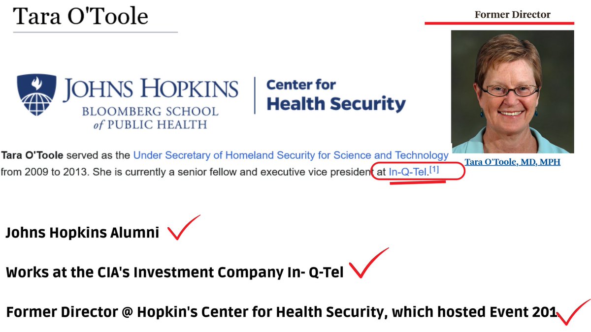 12🧵Lastly, the other IQT member in that roundtable is Tara O'Toole, who is a championed NWO Doom script writer & is behind the exercises Dark Winter, & Crimson Contagion. O'Toole is on the board for JHCHS & was personally listed by the Russian Ministry as implicit in Ukraine BLs https://t.co/H25ZUkMyiw