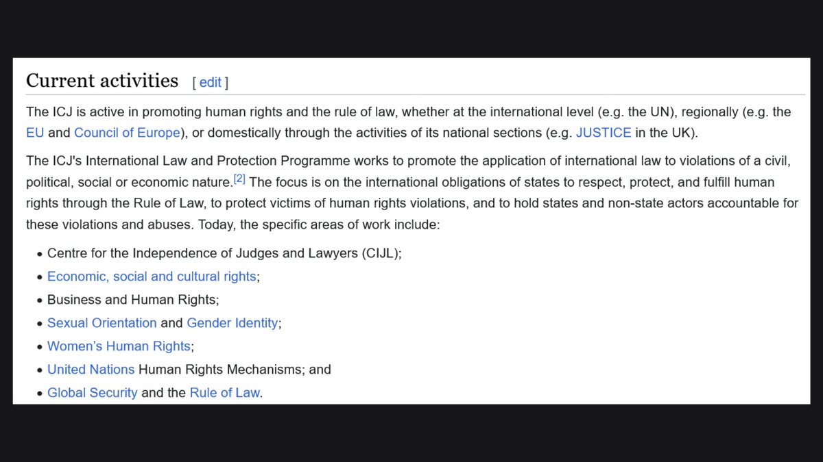 7🧵And who were the initial funders of the International Commission of Jurists? According to their Wikipedia page, The Central Intelligence Agency and right now the UN is mulling over inducting them into their policies. https://t.co/mCkU9gDw1c