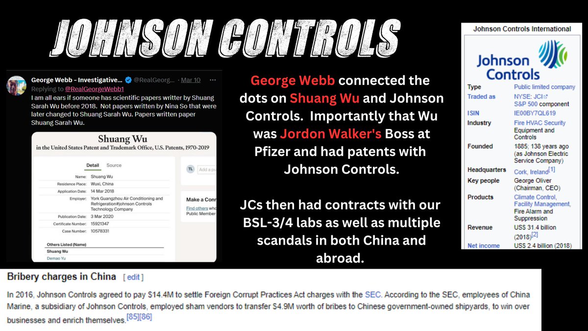 2/7 🧵@RealGeorgeWebb1 uncovered a NIH contract offering for just that by Johnson Controls in 2017. Webb also found that Project Veritas' Pfizer exposed video of Jordon Walker's boss Shuang Wu had a patent for air controls citing Johnson Controls.